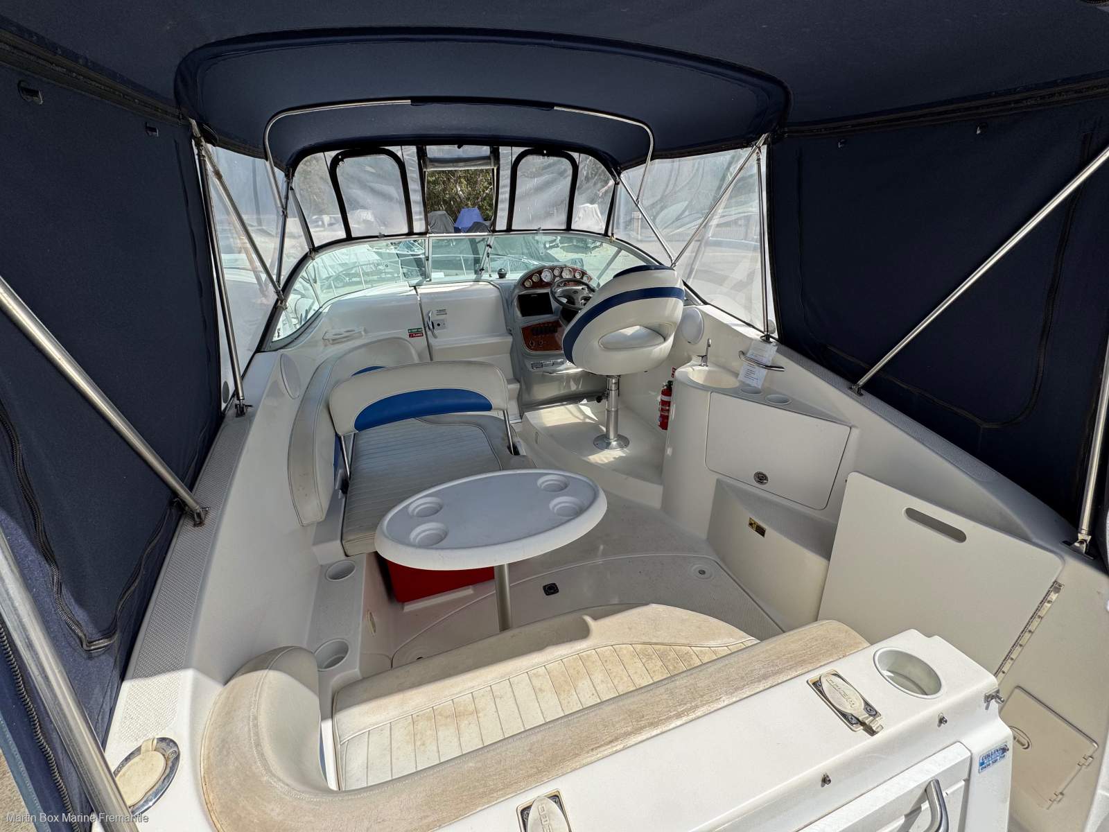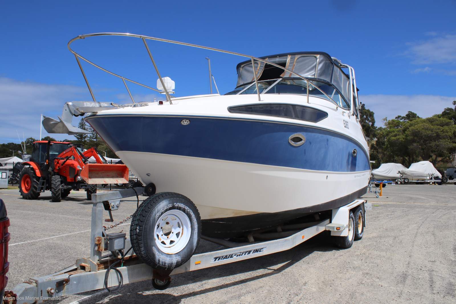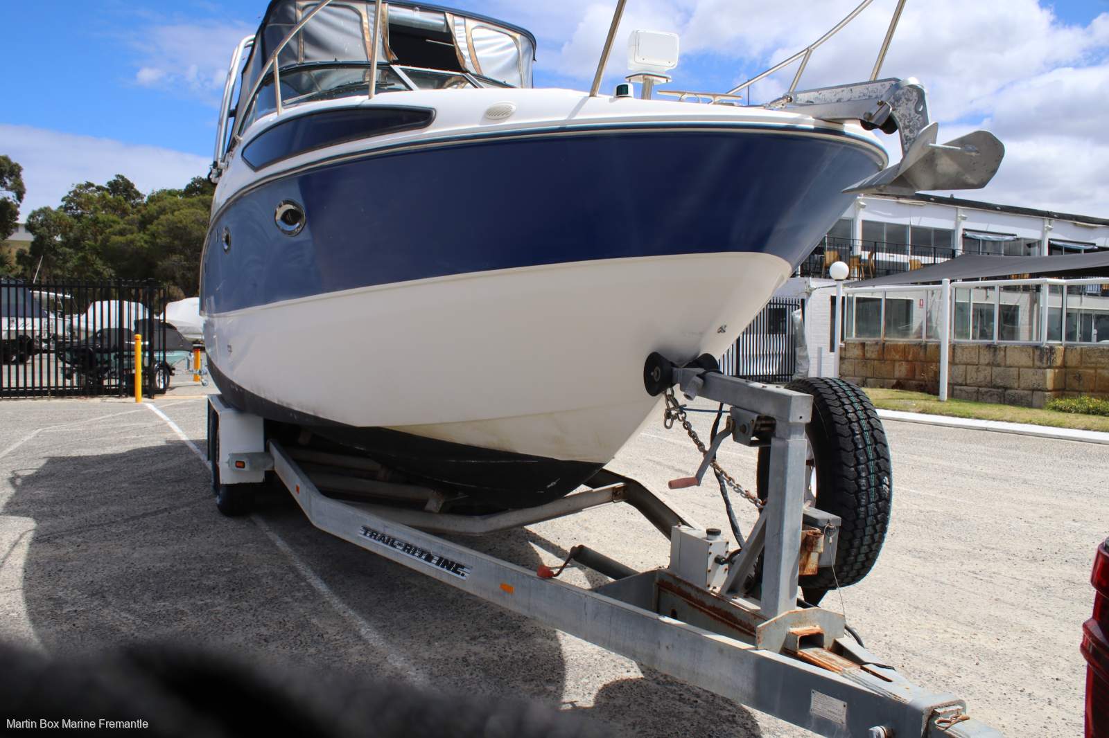 With a 4200Kg Dual Axle Trailer included, this substantial sports cruiser can be dry stored on the hard stand at your local club or kept at home with the right tow vehicle. The Mercruiser 260Hp V8 with a Bravo III Duo-Prop drive unit has done only 160 hours giving economical and reliable power. The cockpit has comfortable seating with full camper covers for extended stays in your favourite bay. The helm is well equipped with a touch screen Simrad GPS and Sounder unit, Bennett Trim Tabs, VHF Radio and a Lewmar electric anchor winch at your fingertips. The modern interior has a large double in the cuddy cabin and a forward V-Berth double that you could pile the kids into. The toilet has a holding tank and the galley has a single burner stove top and a Norcold refrigerator. Other features include a Fish Rail and Baitboard on the swim platform, two burner gas camping stove and a solar panel with a Redarc regulator. With a bit of elbow grease this quality USA built Bayliner will be back to its best.