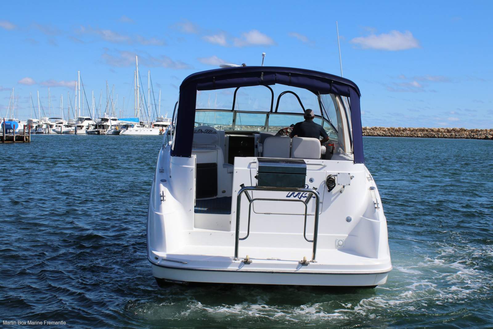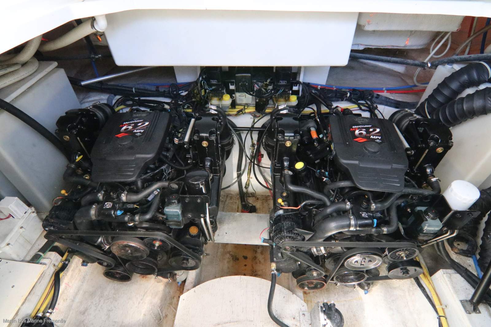 With all out of water servicing recently completed, this exceptionally spacious Sports Cruiser is all set to go. The twin Mercruiser V8's have had extensive works carried out including new manifolds and risers along with a complete service by Shorto Marine. The canopies and clears have also been replaced by Crown Custom trimmers and all cushions for the substantial seating present in new condition. The interior on this model of Bayliner is enormous with full head height throughout and a saloon that feels like a much larger boat. There is a large forward double bed and a mid-ships double bed along with a separate bathroom and a well equipped galley. Onboard systems are powered by a Kohler generator ensuring the refrigeration is cold and the batteries are charged. With only 340 hours, this vessel is in very tidy original condition and has gloss timber finishes and plush leather lounges for a sense of luxury complimented by a massive cockpit area with loads of seating for a substantial amount of guests to enjoy a cruise.