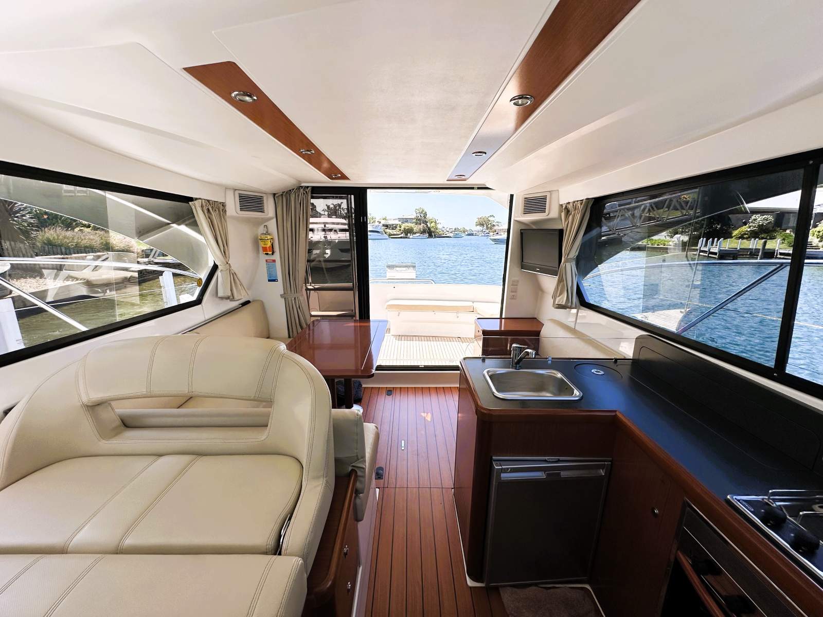 Two cabin, seperate head, saloon and galley with flybridge settee and day bed.
