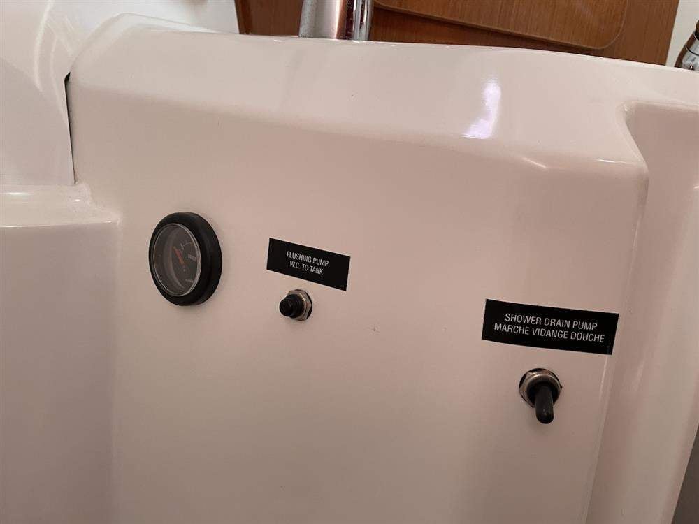 The enclosed wheelhouse gives excellent visibility and shelter, with a bright interior, a convertible dinette that can form a double berth or twin forward-facing seats, and a separate forward cabin with a generous double berth. A self-contained heads compartment with shower and pressurised hot-and-cold water adds real cruising comfort.