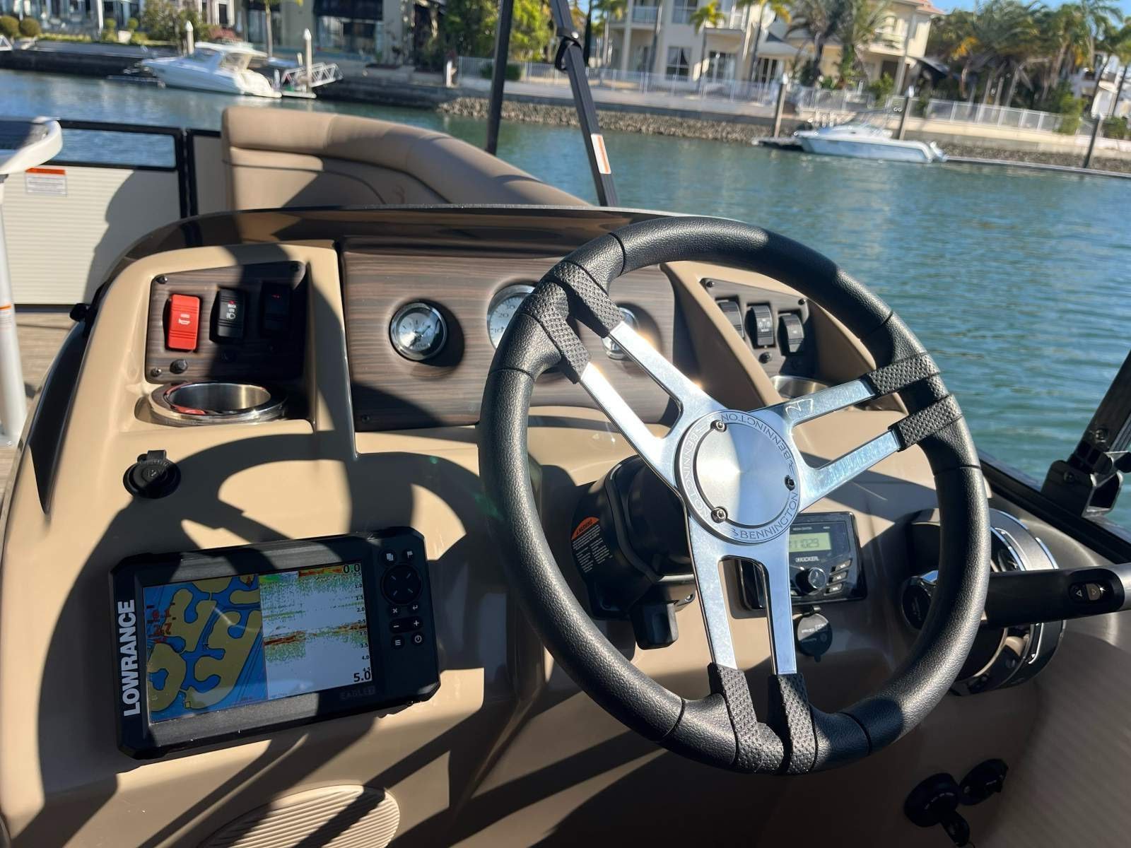 This super popular size and model features a triple-hull pontoon design for incredible stability and performance, powered by a quiet, Mercury 115hp four-stroke with only 19 hours on the clock.