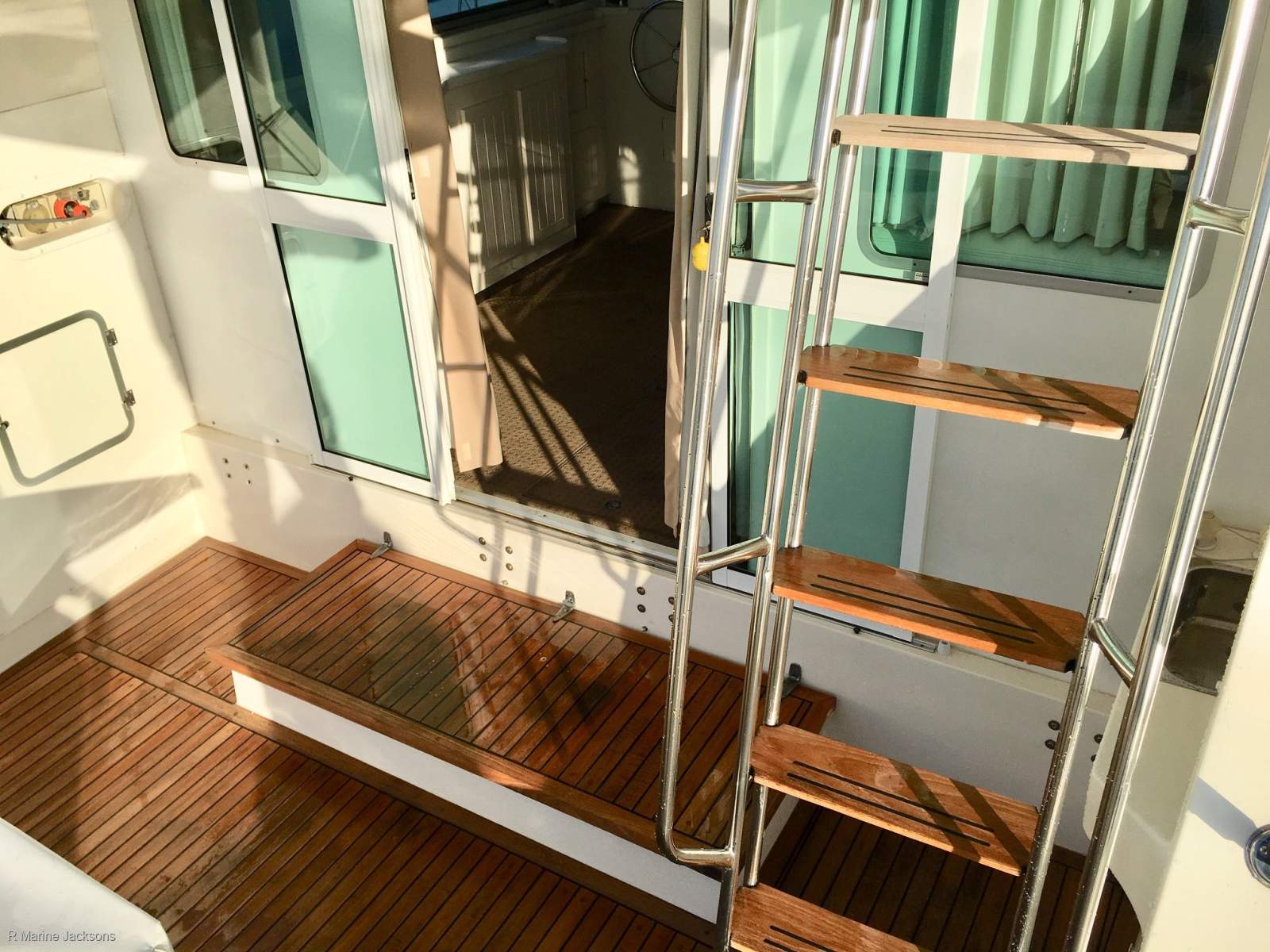 Teak flybridge steps with recessed sika grips Electronic controls