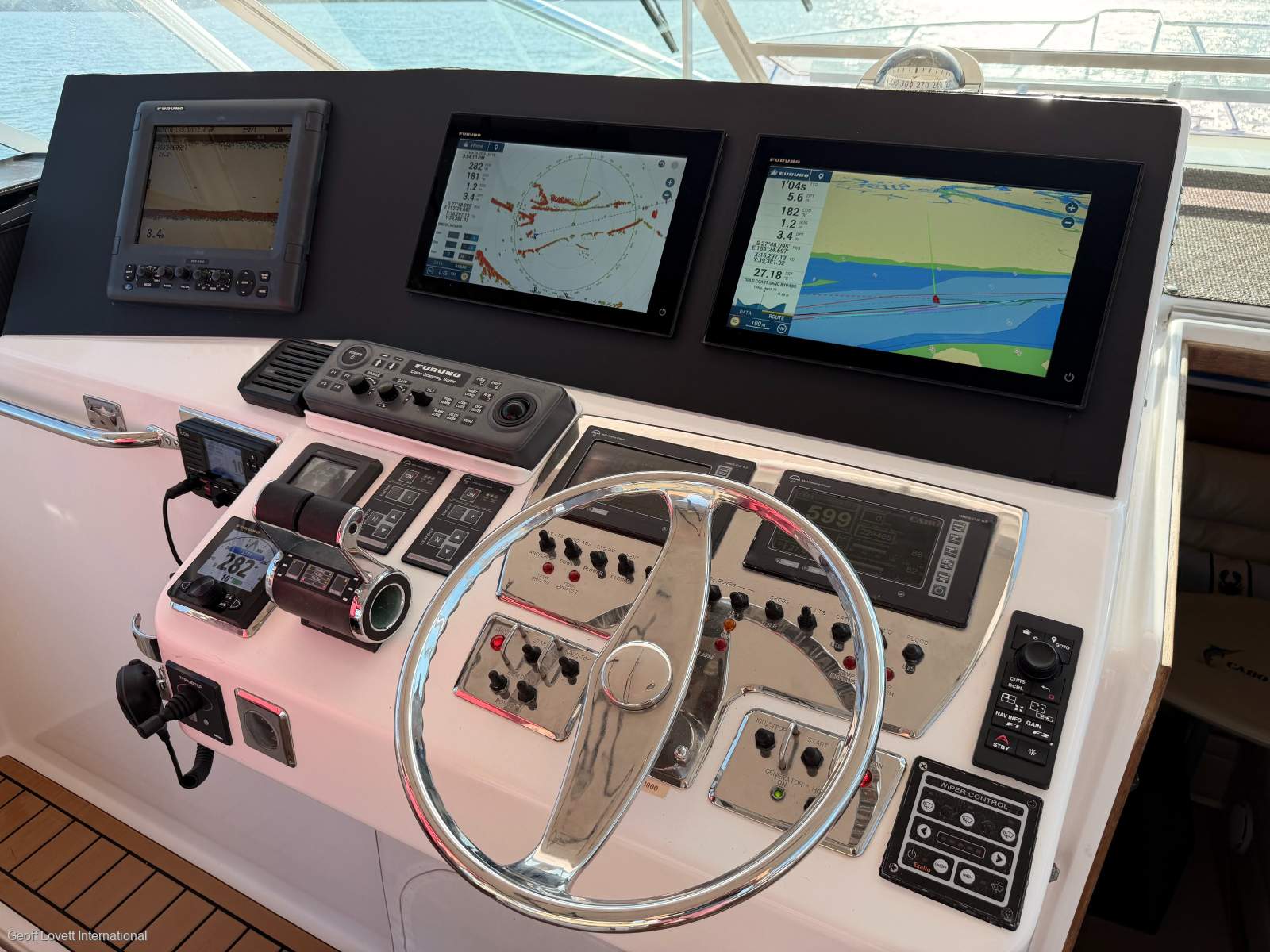 Furuno open array 12 Kw radar, 2 x 16" TZ touch screens, Furuno 1150 FSV colour sounder, Furuno GSH8 600mm Omni Deployable Sonar (new 2026), Furuno autopilot and Icom x 2 VHF and AIS