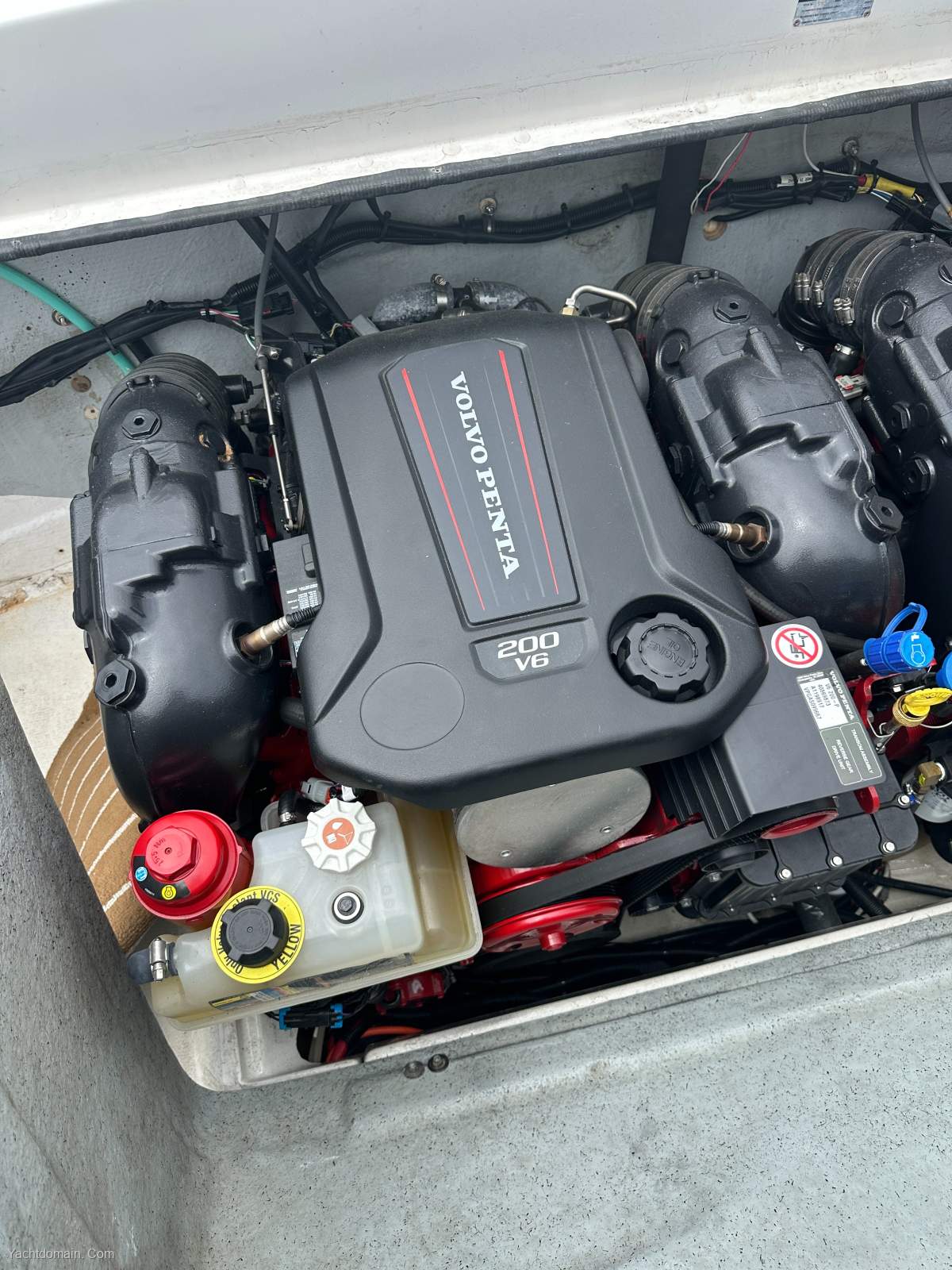 The boat has had a full refit including two new V6-200 Volvo DFI engines fitted. These should still have some factory warranty (buyer to confirm at time of survey). The engines are driving legs fitted with Stainless Steel Duo Props. She has a 7ins Raymarine unit with integrated engine displays. Flybridge controls new. Stainless Steel wheel at helm.