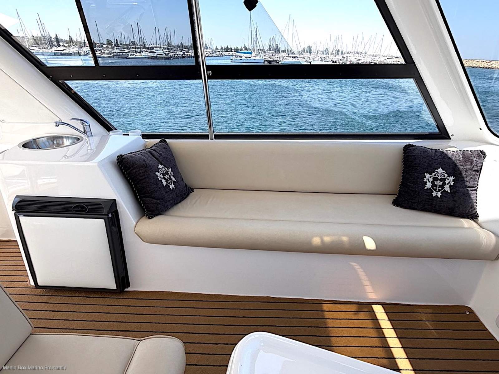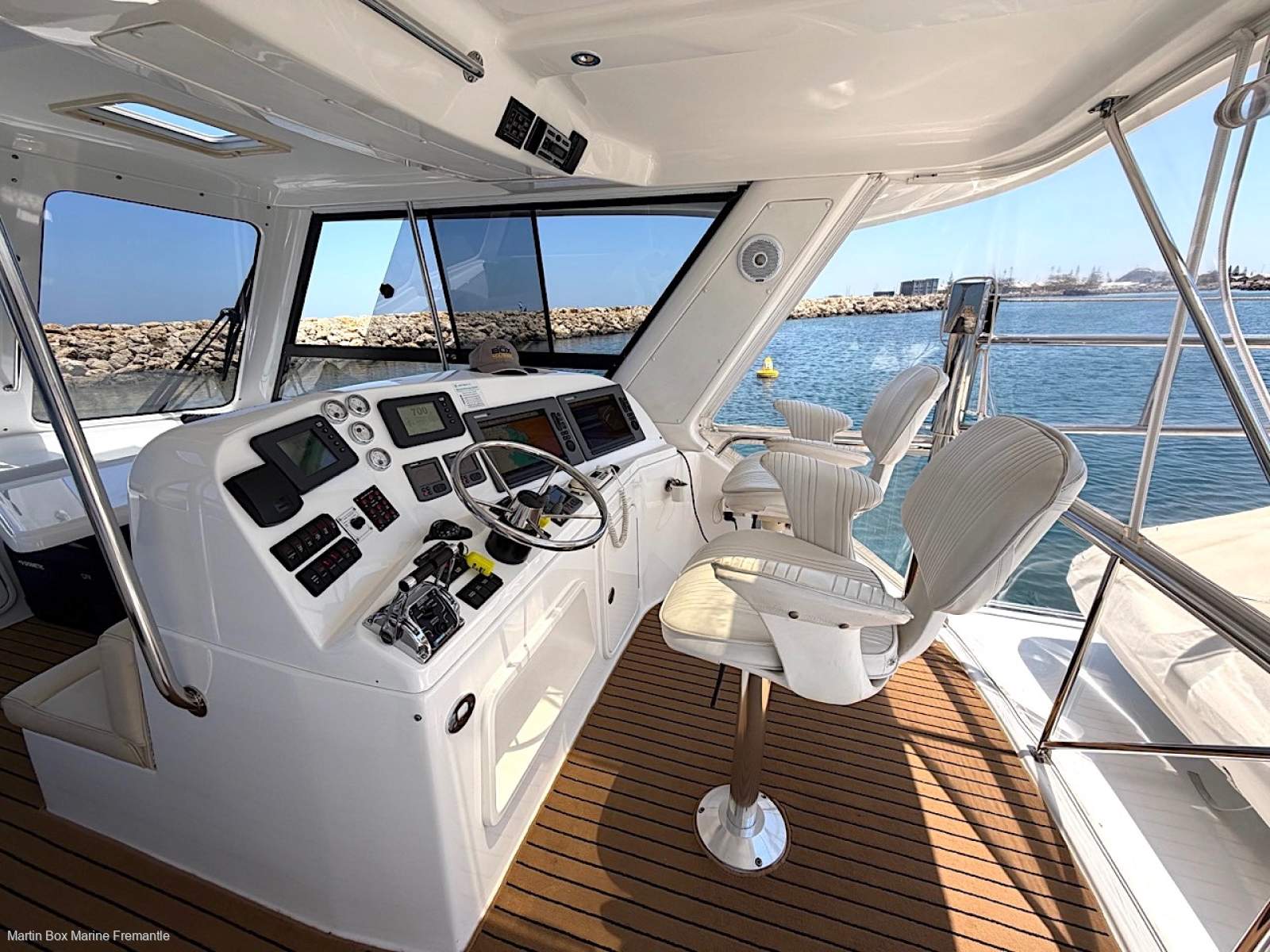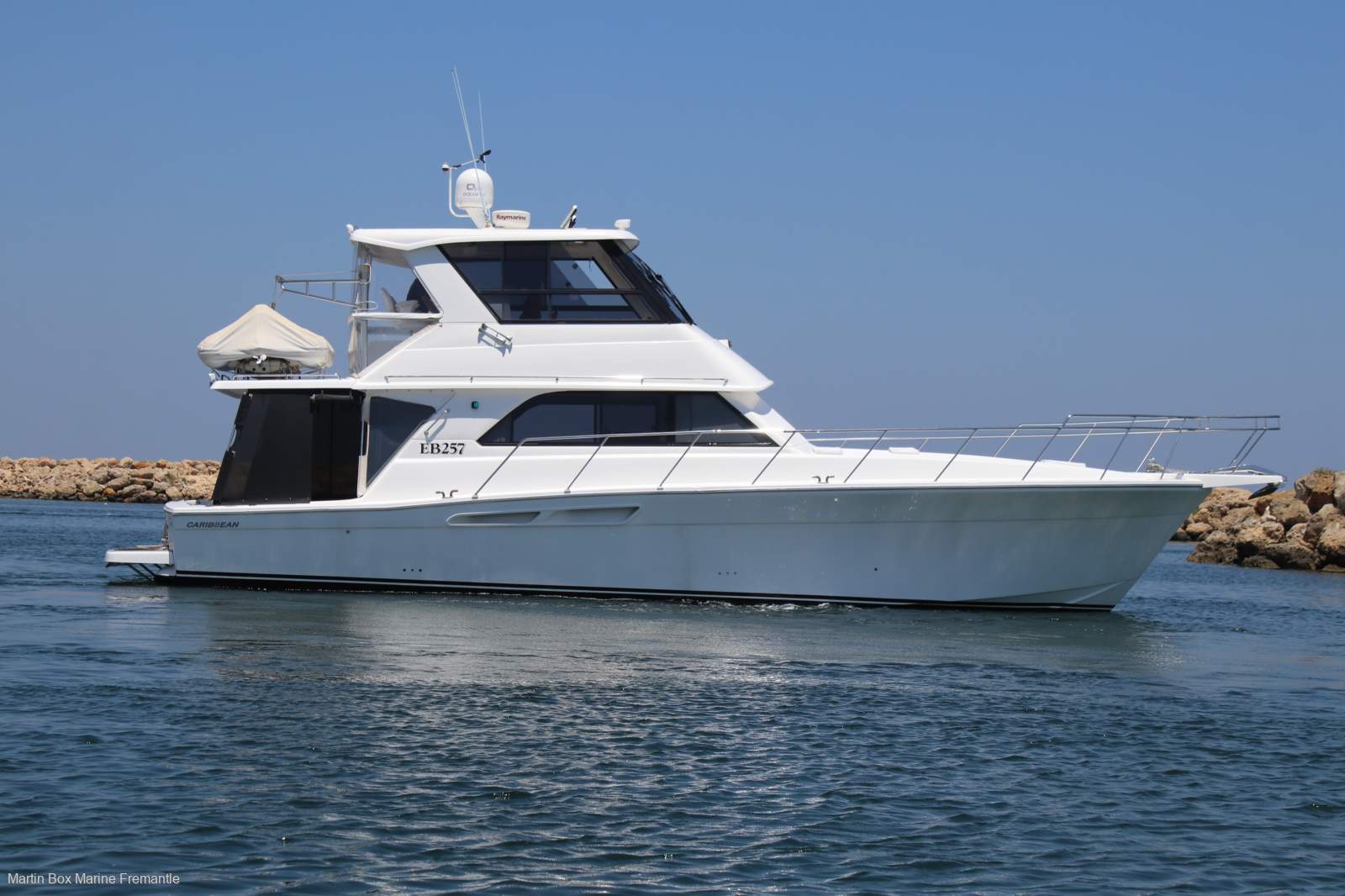 This highly optioned Caribbean is truly a "Boat for Life". The last one ever delivered to Western Australia and equipped with the best of everything including 715Hp Caterpillar C12 diesels and a big 13.5Kva generator. Presentation is excellent both above and below decks with the current owner lavishing it with attention and gentle family use. The luxurious, fully airconditioned, interior features gloss Cherrywood timber finishes and plush cream leather lounges and offers three cabins to accommodate up to nine adults and two full sized bathrooms with vacuum flush toilets and a 200Ltr holding tank. The rich Teak laid cockpit has a fixed dining table and is covered by an extended solid hardtop and protected by a full set of breezeways to fully enclose the area. The enclosed flybridge also has internal shade screens so it can be used for additional accommodation and the helm is equipped with Raymarine electronics along with digital controls for the engines and both Bow and Stern thrusters making handling effortless. Other features include a Citor desalinator, custom BBQ, CTV cameras to the cockpit and engine room, Inverter and galley dishwasher. This is the only Caribbean 47 available in Australia and with only 447 hours of running time, it is the best you will ever see. Available for inspection here in Fremantle and getting customers onboard will be my absolute pleasure.