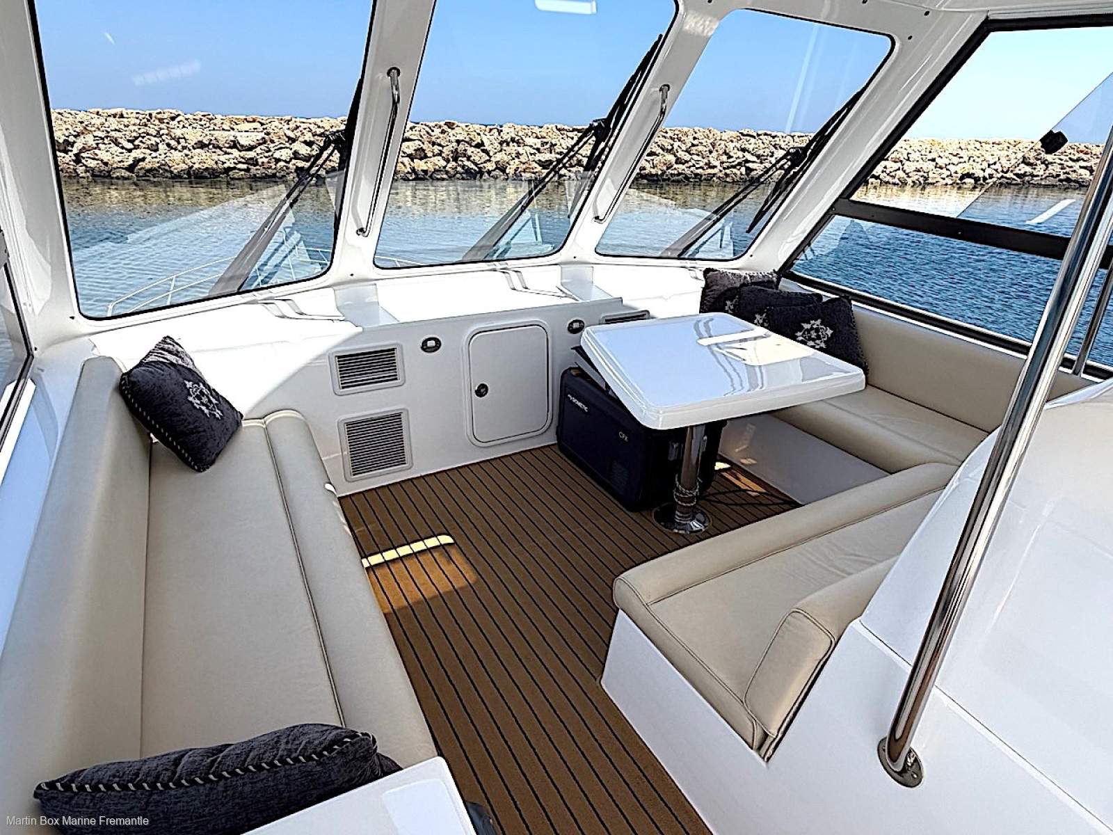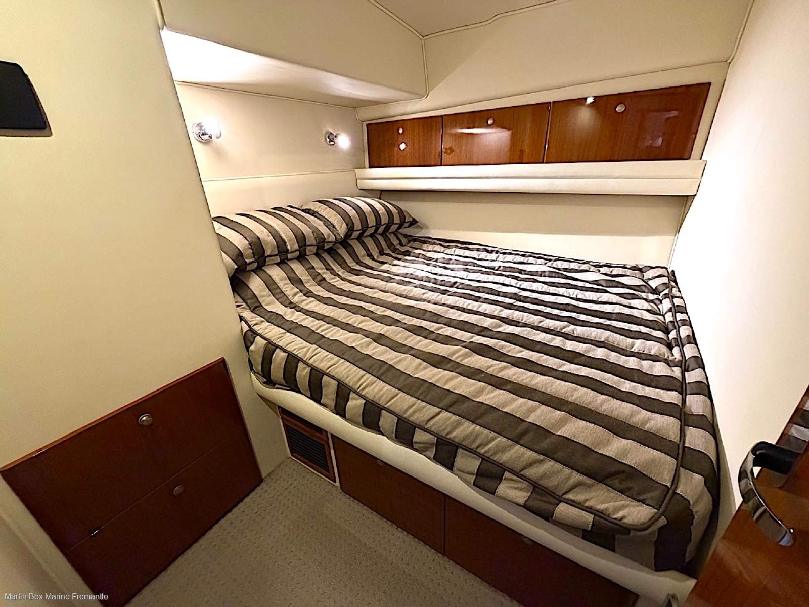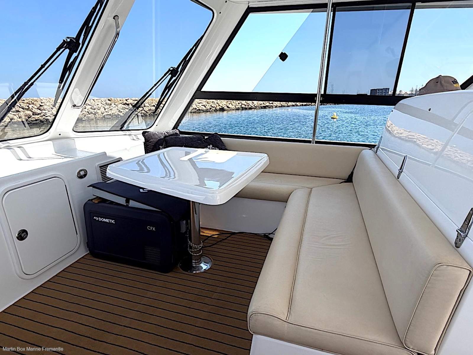 This highly optioned Caribbean is truly a "Boat for Life". The last one ever delivered to Western Australia and equipped with the best of everything including 715Hp Caterpillar C12 diesels and a big 13.5Kva generator. Presentation is excellent both above and below decks with the current owner lavishing it with attention and gentle family use. The luxurious, fully airconditioned, interior features gloss Cherrywood timber finishes and plush cream leather lounges and offers three cabins to accommodate up to nine adults and two full sized bathrooms with vacuum flush toilets and a 200Ltr holding tank. The rich Teak laid cockpit has a fixed dining table and is covered by an extended solid hardtop and protected by a full set of breezeways to fully enclose the area. The enclosed flybridge also has internal shade screens so it can be used for additional accommodation and the helm is equipped with Raymarine electronics along with digital controls for the engines and both Bow and Stern thrusters making handling effortless. Other features include a Citor desalinator, custom BBQ, CTV cameras to the cockpit and engine room, Inverter and galley dishwasher. This is the only Caribbean 47 available in Australia and with only 447 hours of running time, it is the best you will ever see. Available for inspection here in Fremantle and getting customers onboard will be my absolute pleasure.