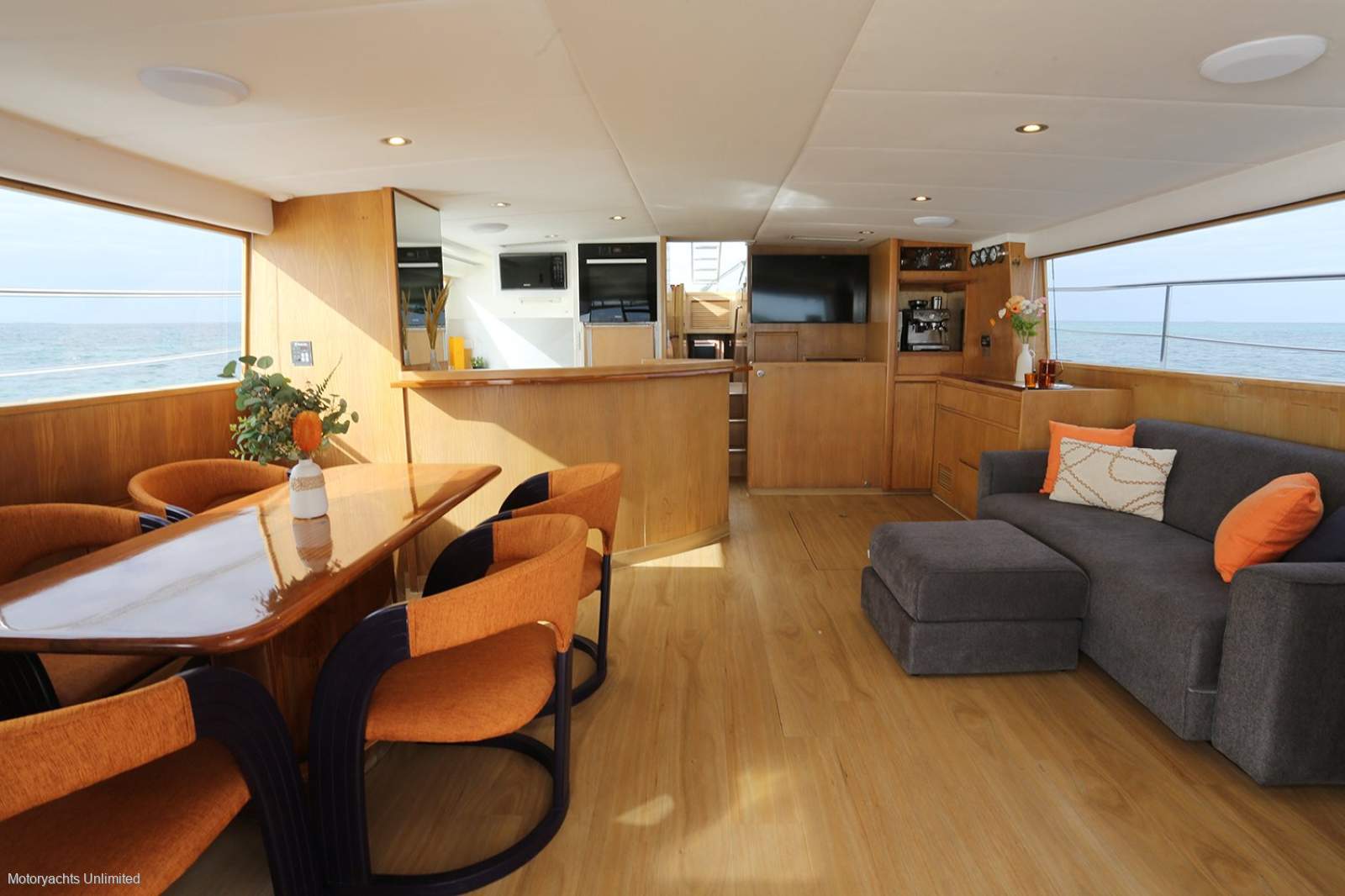 The open plan living and multiple entertainment spaces were the initial attraction. The hydraulic bow and stern thrusters made her more attractive knowing she would be super easy to handle.