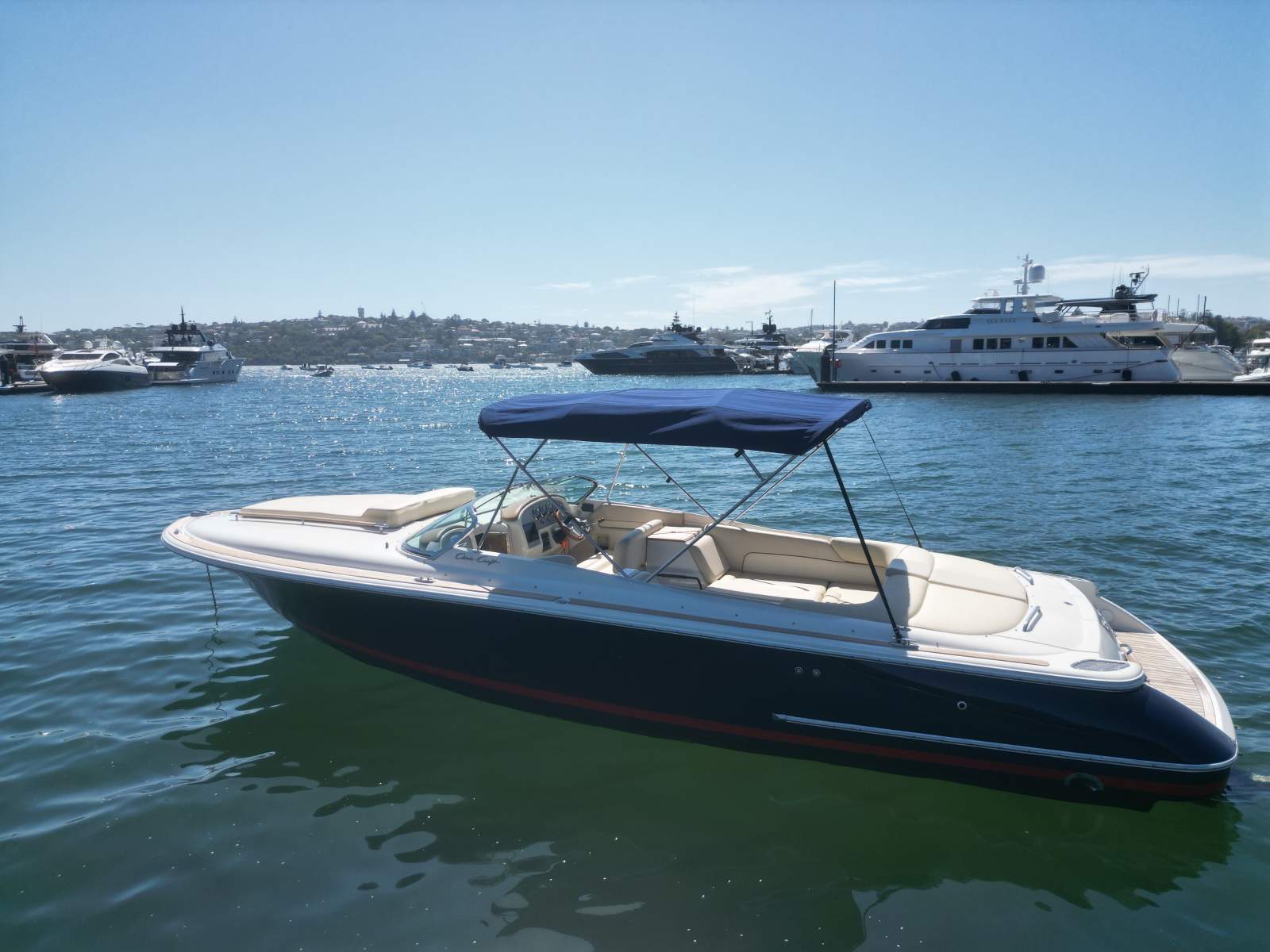 Stunning Chris Craft Corsair 28 Heritage Edition - the perfect Sydney Harbour day boat with classic lines, teak detailing and serious performance from twin Volvo 5.7Gi V8s. Professionally maintained with no expense spared, dry stored out of the water for around eight months each year over winter and kept on a serviced mooring for the summer season.