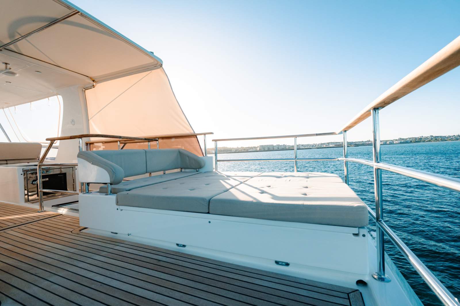 - Expansive flybridge with covers and clears for all-weather entertaining