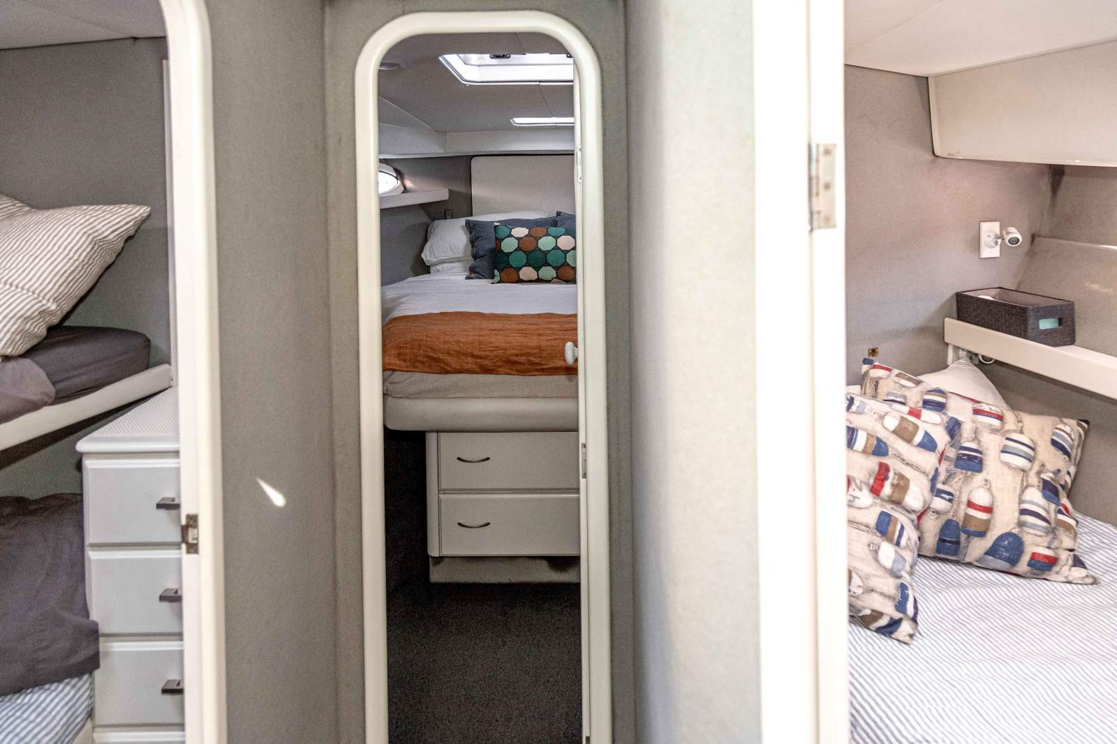 Powered by twin 375hp Caterpillar 3208 turbo diesel shaft drive engines, recently serviced on 5th Nov 2025, Ricochet cruises comfortably at 14-15 knots. The spacious engine bay allows for easy maintenance, storage, or future upgrades. A true head-turner, Ricochet offers both reliability and comfort for those who appreciate fine craftsmanship and performance.