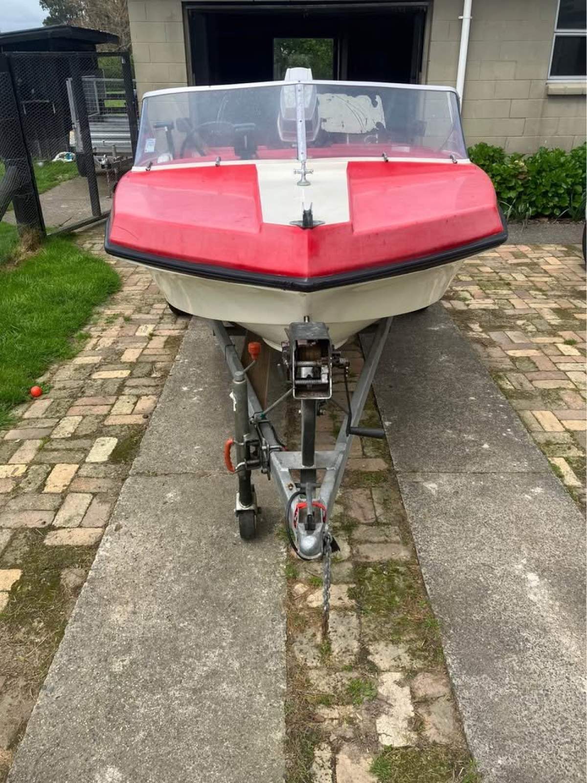 Comes with a few things for fishing, spare wheel, anchor, cover, aux bracket and a few other bits and pieces. New wheel bearings.
