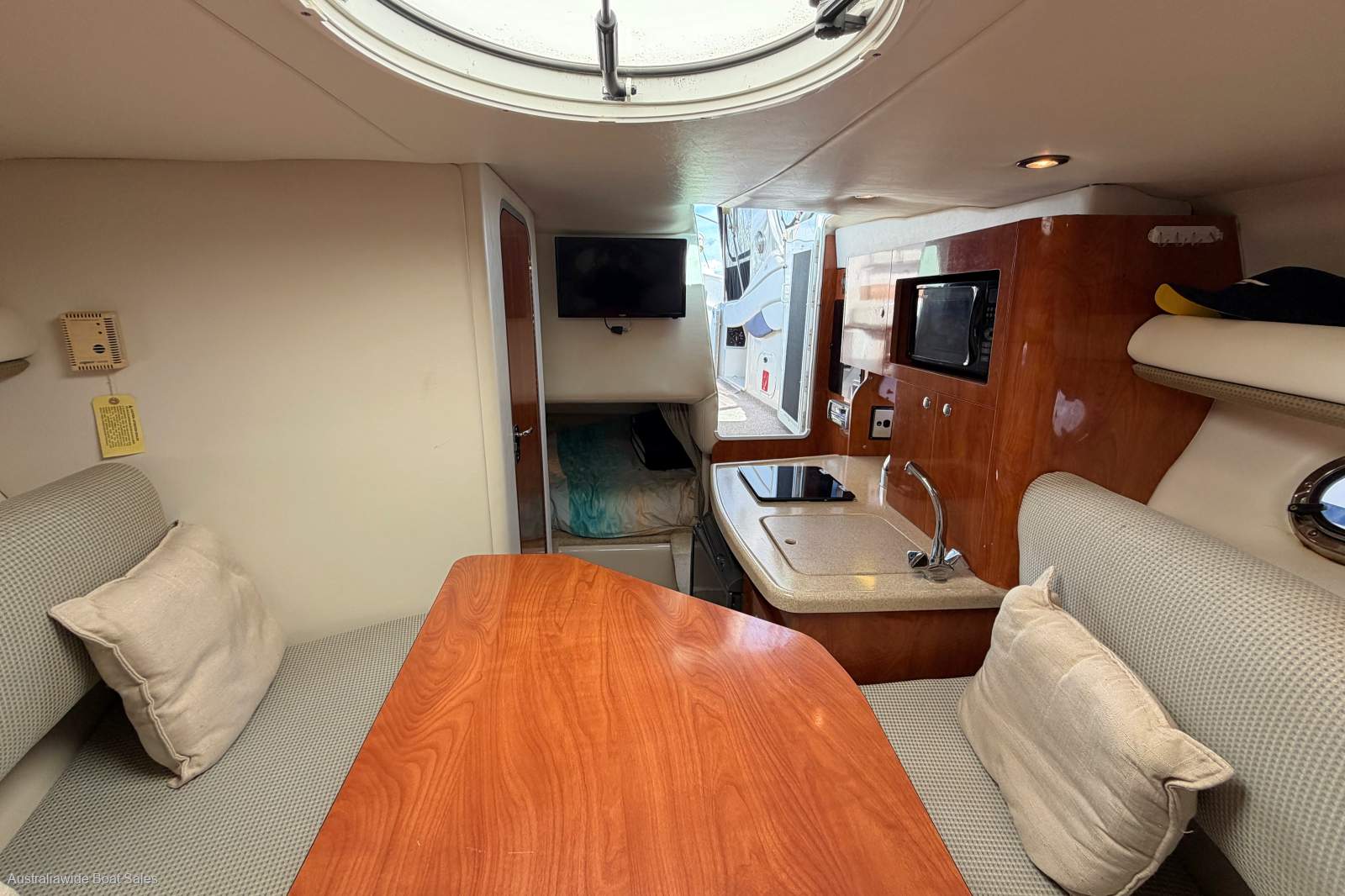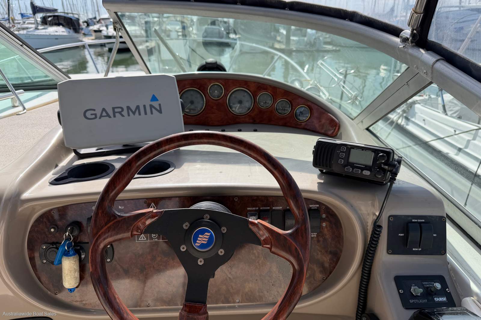 Nice compact sports cruiser with all the quality you expect of Four Winns. Powered by a 300hp 6.2 litre V8 Mercruiser showing just over 600 hrs, with new Manifolds and risers installed mid 2023 and a good recent service history. Over all she present in nice condition through out or her age with just some wear showing on the cockpit upholstery. The 268 Vista has always had a good reputation as a reliable, economical (she uses around 40 litre at cruising) easy to handle boat so if you're considering boating for the first time as a couple or a small family, she may just suit. New carpets, new hot water system, clean neat and tidy. She is located at her marina berth opposite our Australiawide Manly Qld office and we look forward to arranging an inspection for you.