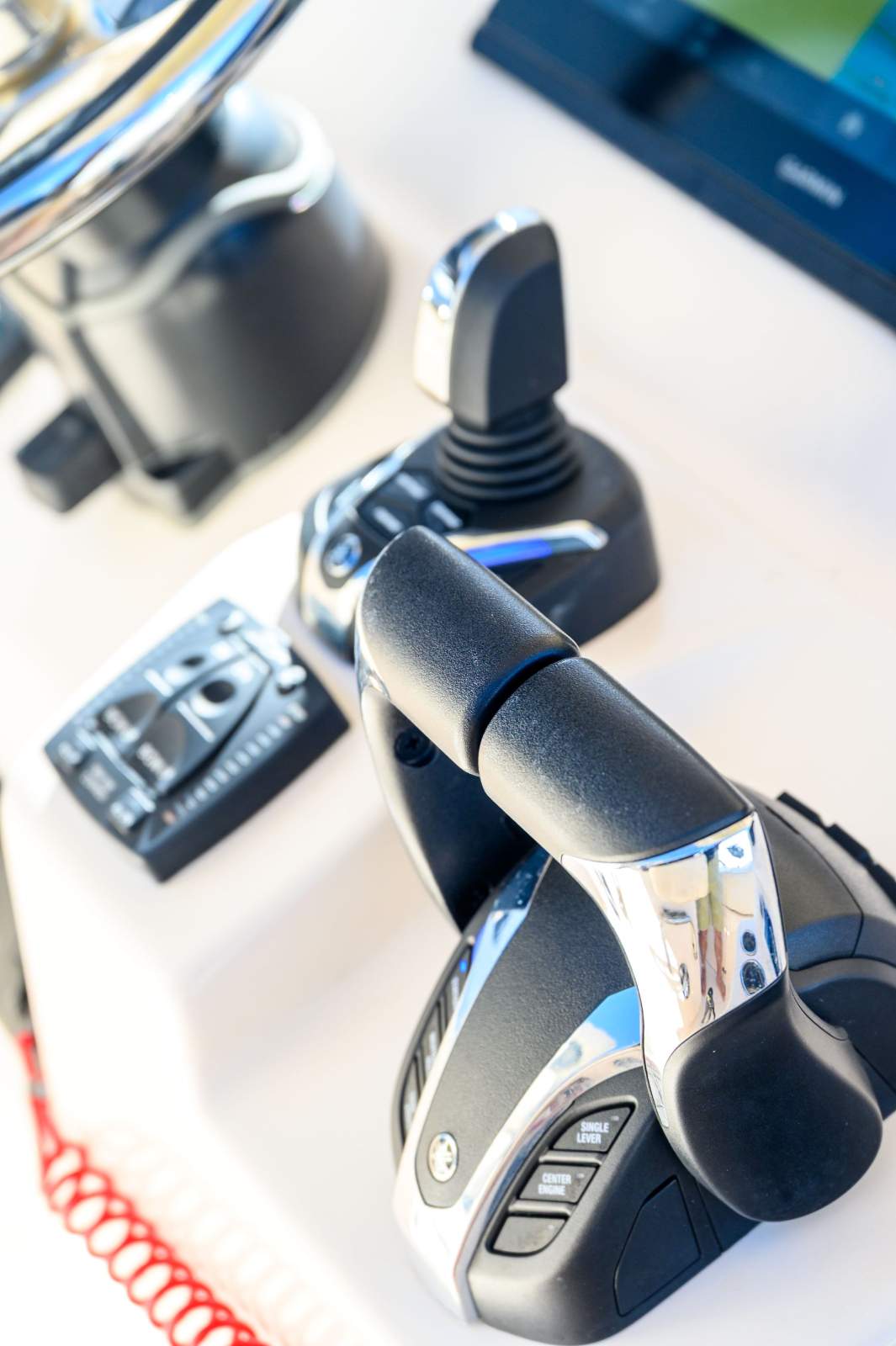 Twin Garmin MFD Displays, Yamaha Joystick Controls (Driftpoint, Fishpoint, Staypoint Features), Lenco Trim Tabs, Lewmar Bow Thruster, Yamaha Engine Display Guage, Yamaha Autopilot
