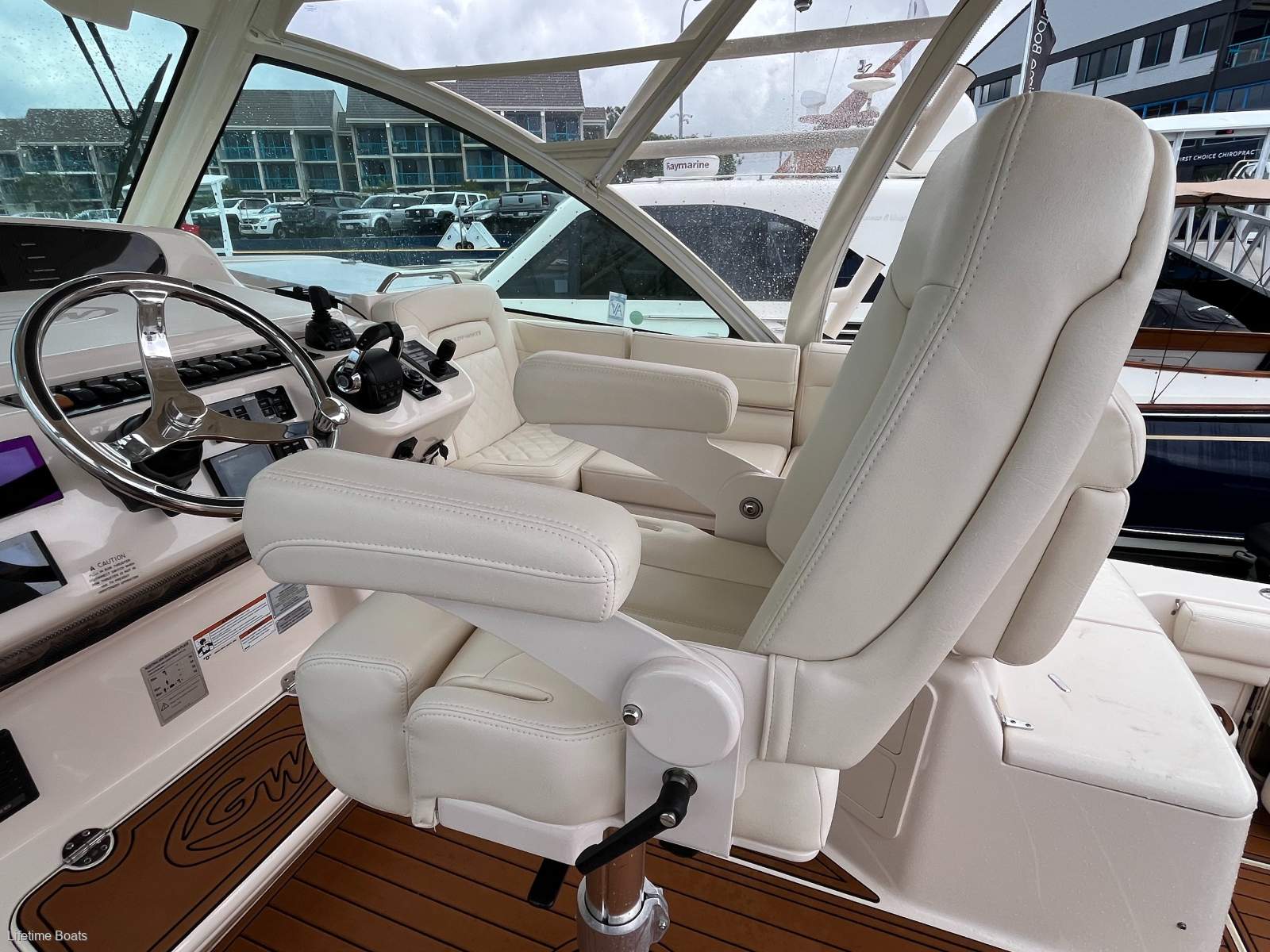 Custom made removable fibreglass cockpit table, Factory side cockpit lounge seat, SureShade electric awning, Telescopic outriggers, Ample rod holders and rod storage, Plumbed live bait tank, Custom stainless fender baskets, Full cockpit and helm deck soft flooring,