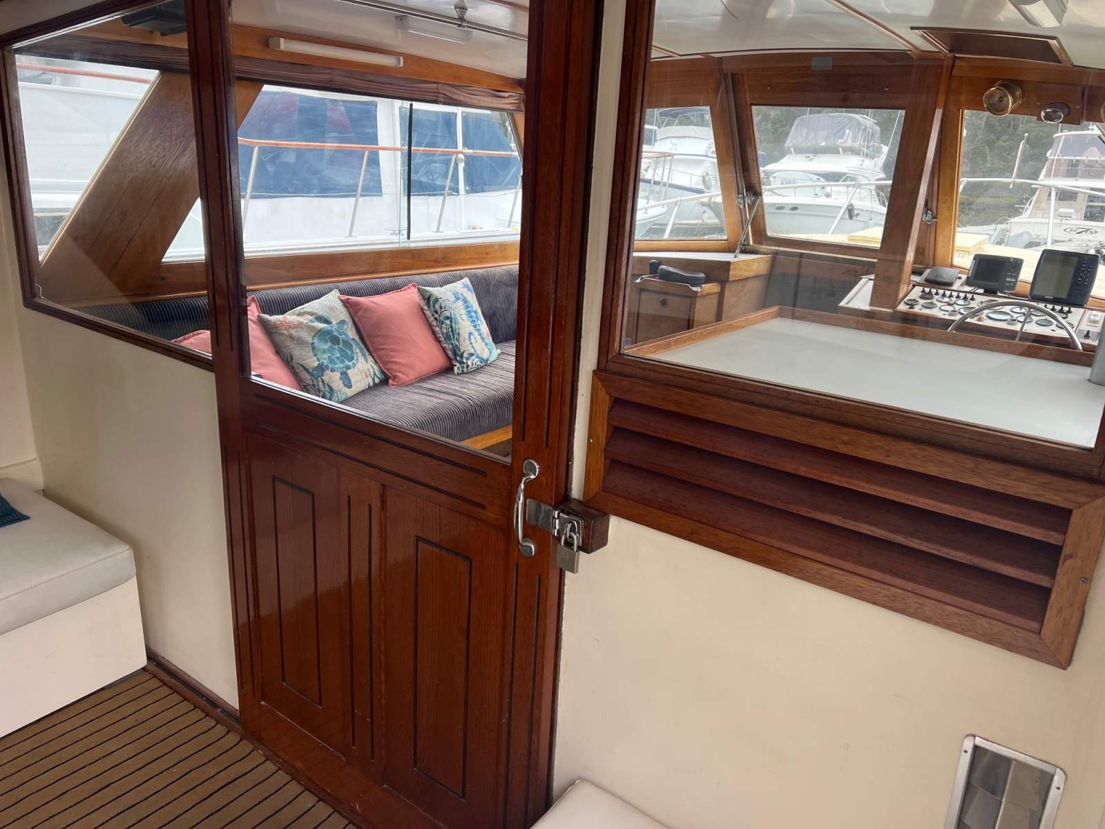 A beautiful Halvorsen Viking 32. Twin Diesel Shaft Cummins! A rare vessel in this format. Makes for a very comfortable, reliable family boat. "Nomad" is currently berthed on the lovely Hawkesbury river of Sydney. Cared for by a timber maritime custodian. The hull is sheathed from factory production! Also rare (Peace of Mind). Double diagonal oregon planked. Varnished maple interior.