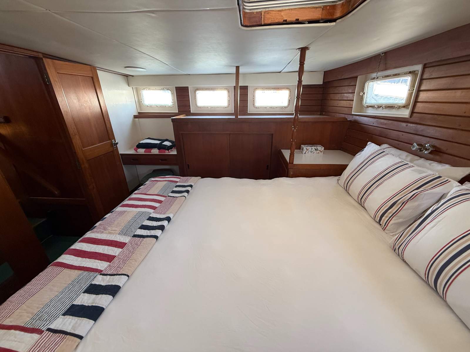 Plenty of accommodation with the master cabin aft (with its own ensuite), two singles in the V berth (forward) and two single bunks (forward - starb side)