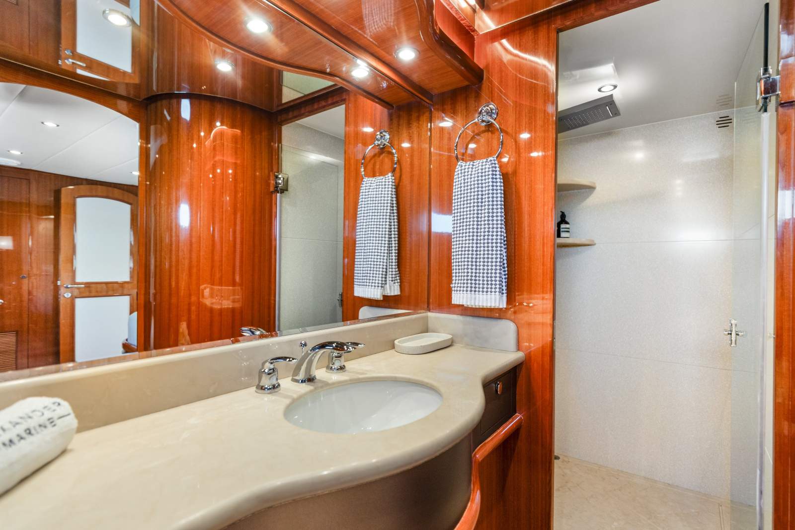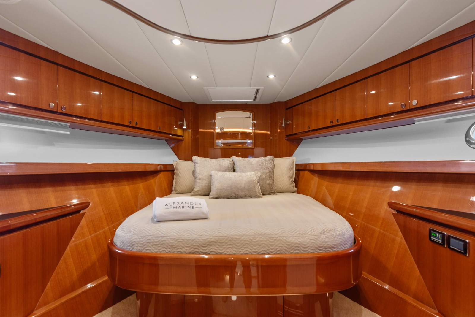 Accessed from either a water-tight door in the the transom, or from just inside the saloon, is access to the well-laid-out engine room. Powered by twin Caterpillar C18 873hp engines, 'Mahalo' delivers a top speed approaching 20 knots. Two Onan generators (22.5KW and 13.5KW) provide ample onboard power for extended voyages, while her systems and engineering reflect Hampton's commitment to reliability and ease of maintenance.