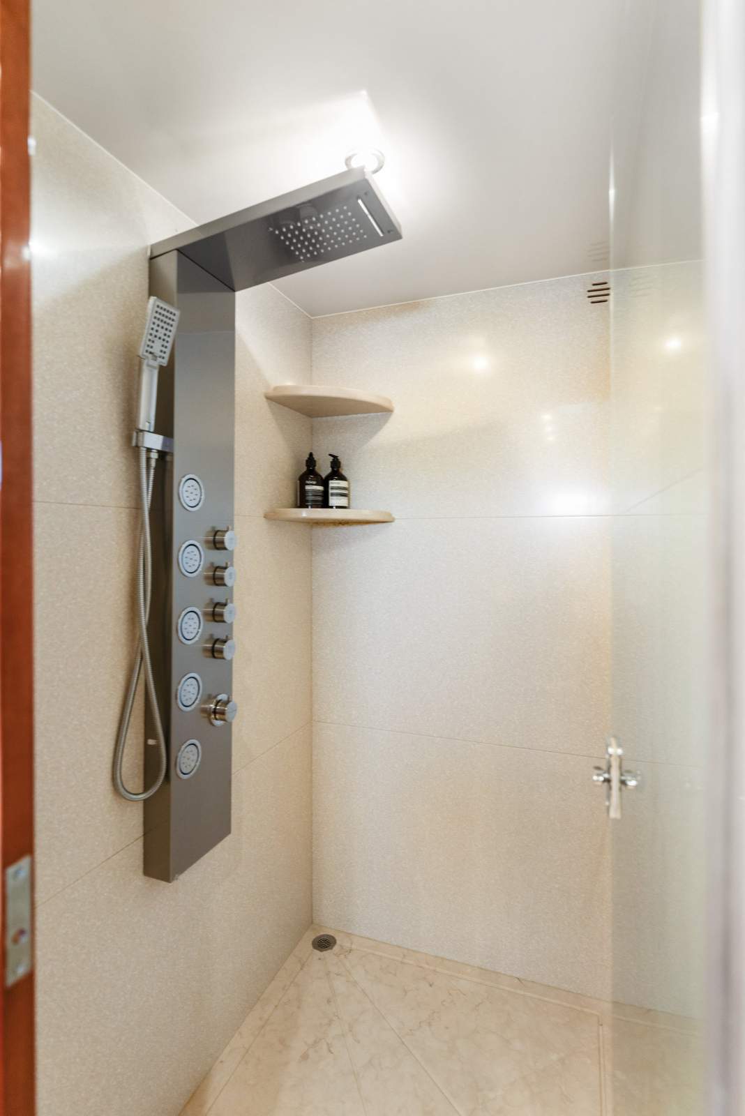 Saloon: 43" Samsung Frame TV. Sonos Beam Soundbar. Flybridge: Drop down 43" Samsung Frame TV. Master: 43" Samsung Frame TV. VIP: 32" Samsung Frame TV. Guest cabin: 19" Grundig TV. Fusion sound system with Amp and Subwoofer. Sonos Amps in saloon and cockpit.