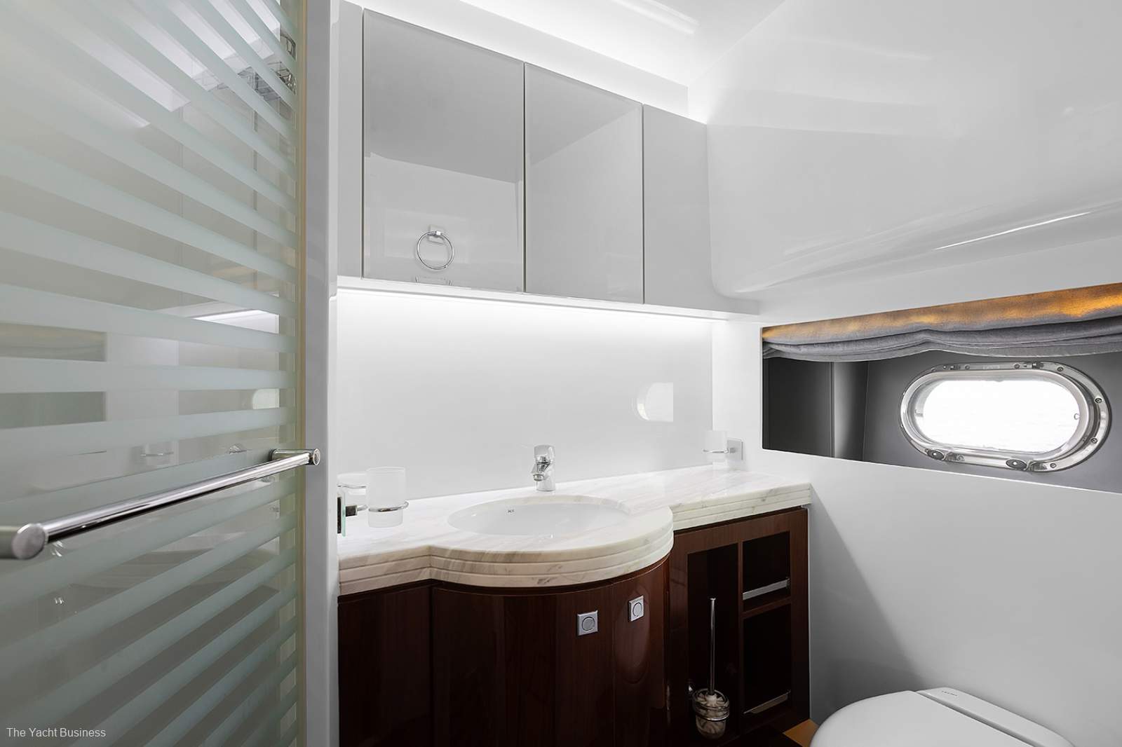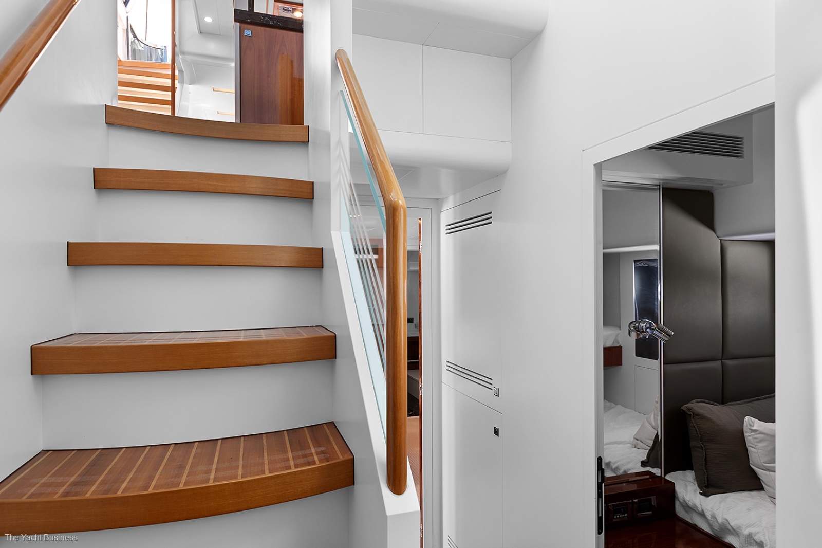 Performance & Handling: Powered by twin CAT C18 (1150hp) ACERT engines and equipped with hydraulic bow/stern thrusters and a wireless Yacht Controller for effortless docking.