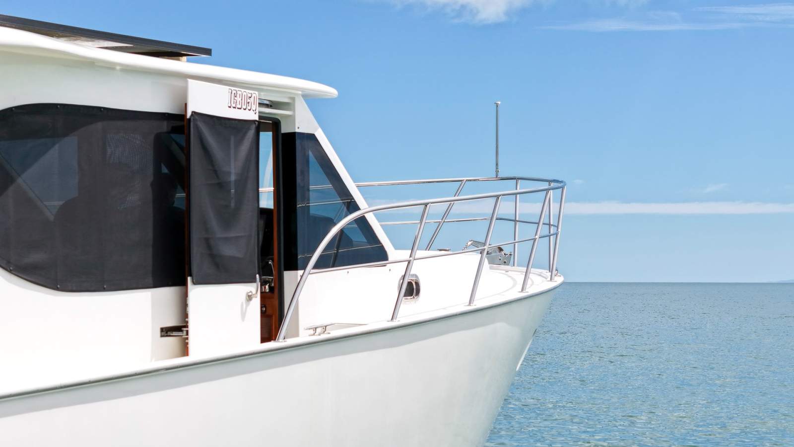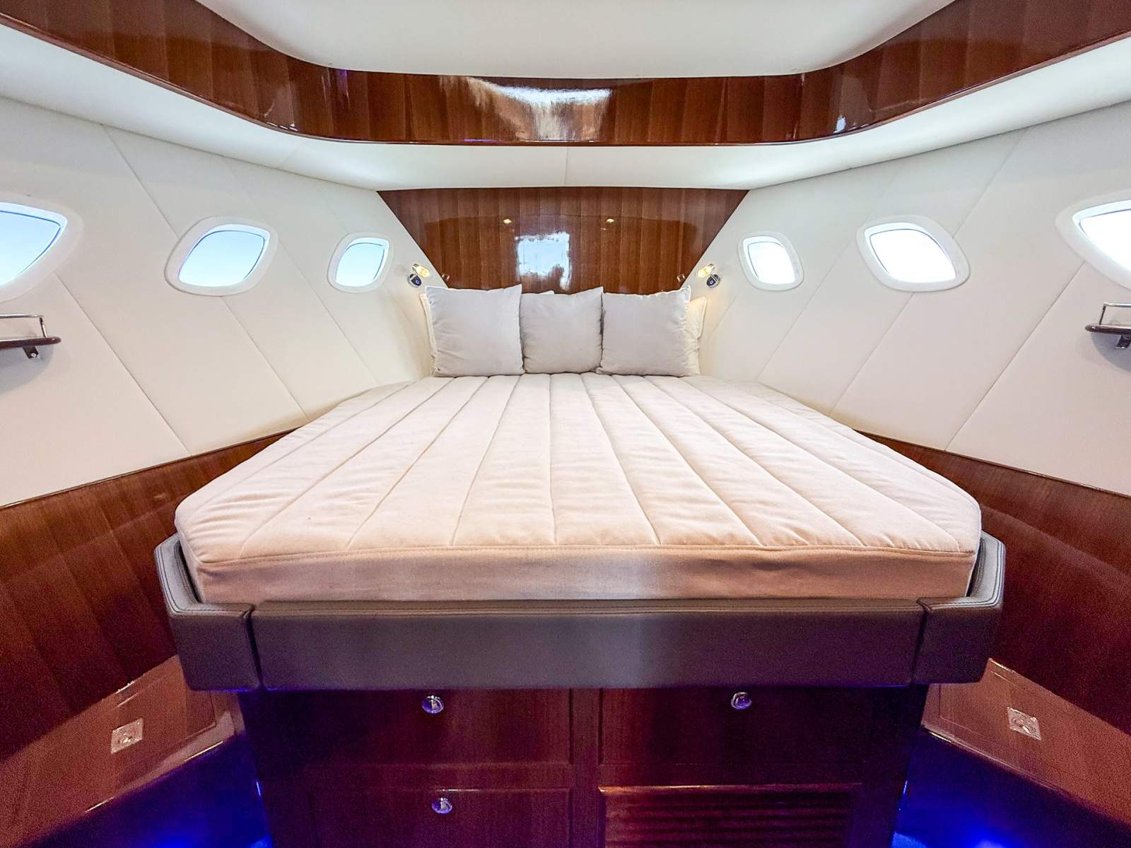 Accommodation is generous for her class, comprising a queen master cabin, double guest cabin, and convertible dinette--comfortably sleeping up to six guests in air-conditioned comfort. The bathroom includes an electric toilet and a surprisingly spacious separate shower. Onboard entertainment is well catered for, with a Fusion sound system throughout and a flat-screen LED TV in the saloon.