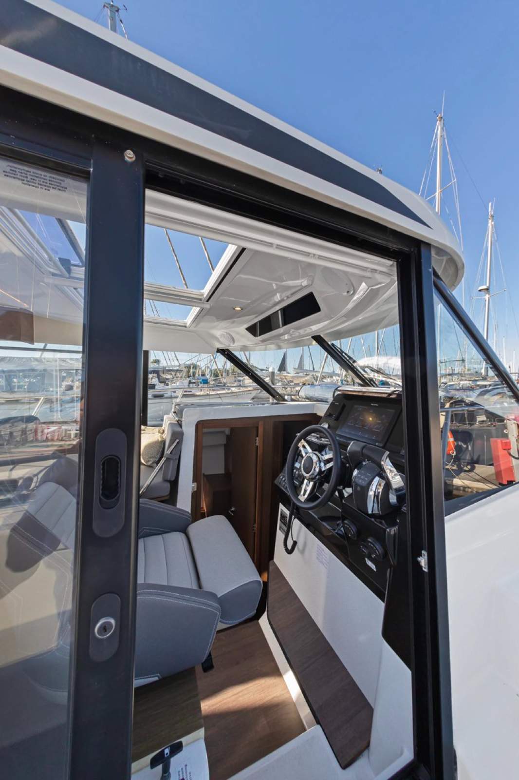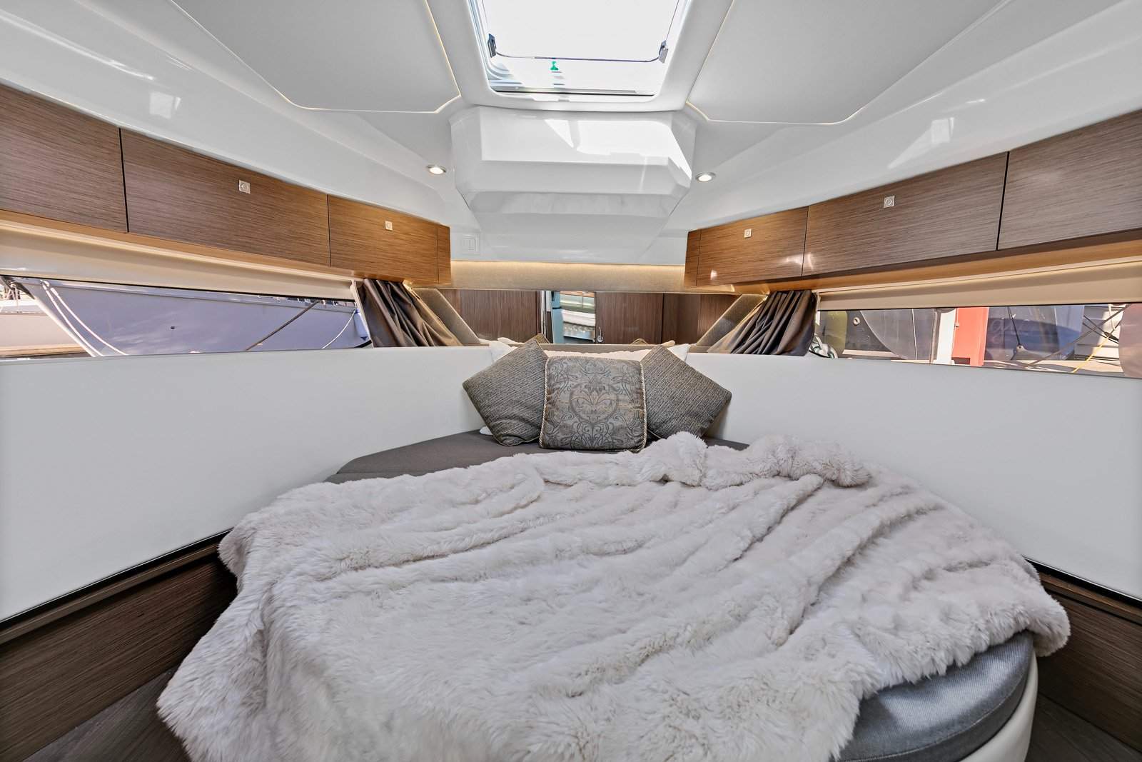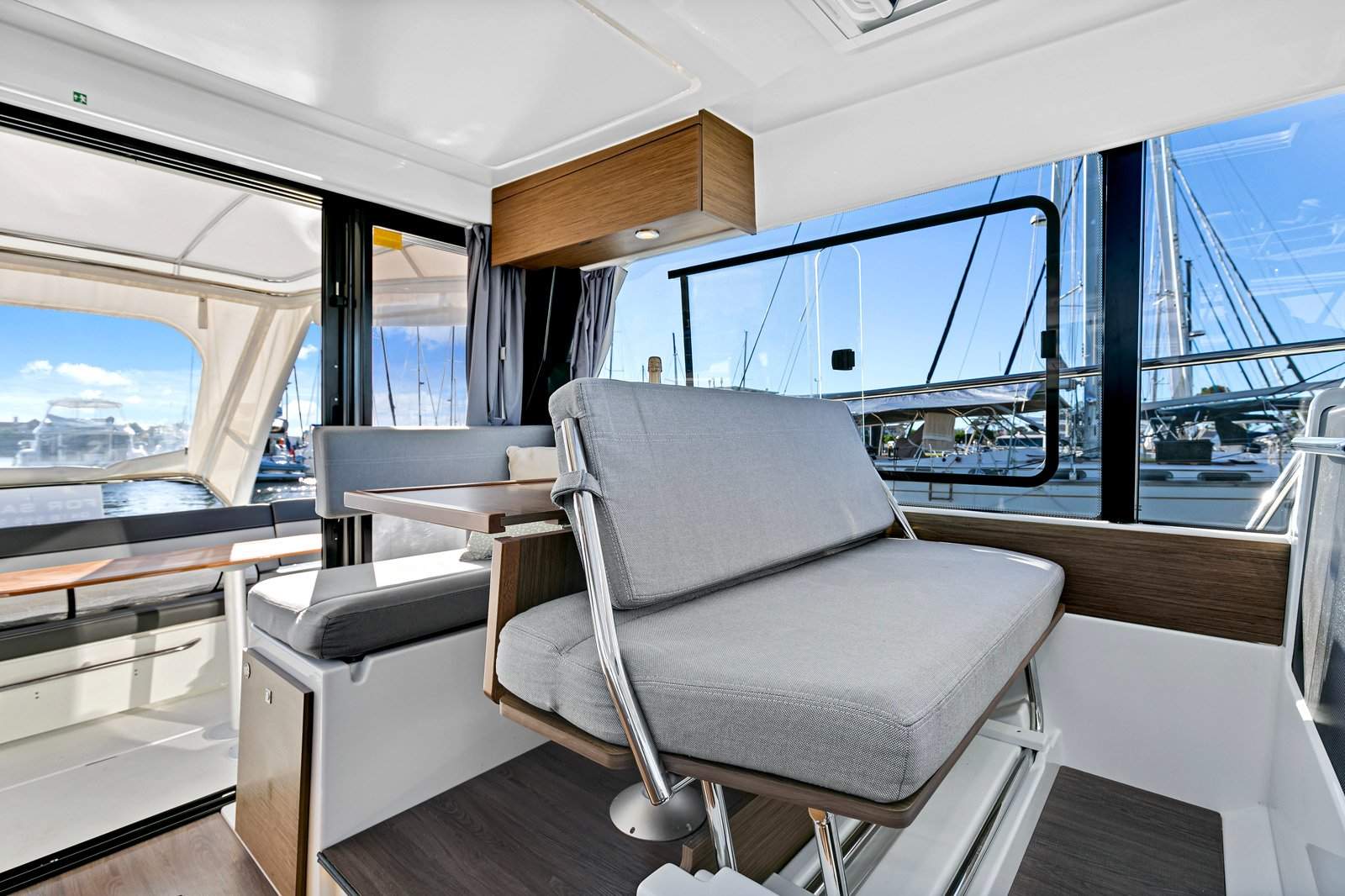 The ingenious use of space in the Merry Fisher range stems from the fact that outboard power doesn't encroach on hull space - where inboard engines would otherwise reside. This leaves more space available for accommodation - and the Merry Fisher 1095 excels at providing efficient, functional, and luxuriously modern accommodation.