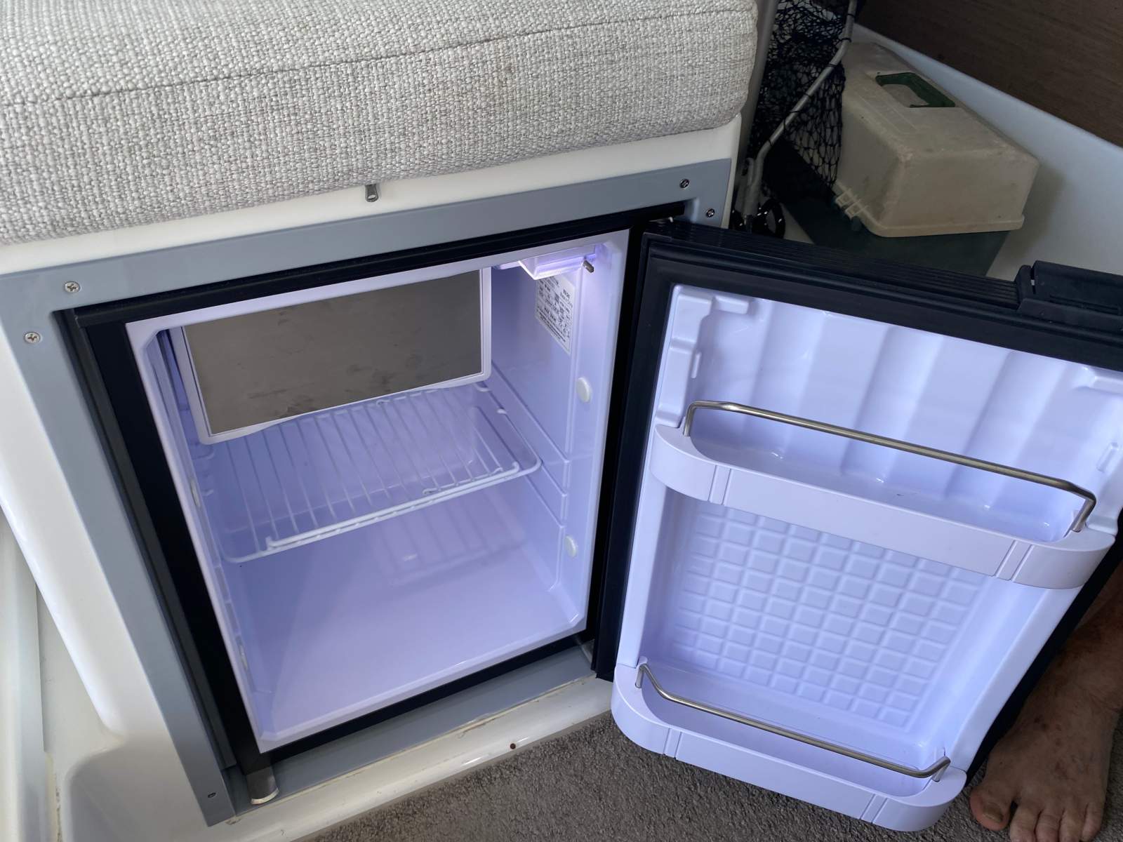 The wheelhouse is bright and well-ventilated with a sliding roof hatch, portside sliding window, copilot bench with movable backrest, and full interior curtains for privacy. The saloon and forward cabin can both convert to additional sleeping space, making overnight stays simple and comfortable. A separate enclosed toilet compartment with marine head, tap, and opening portlight adds to the practicality.