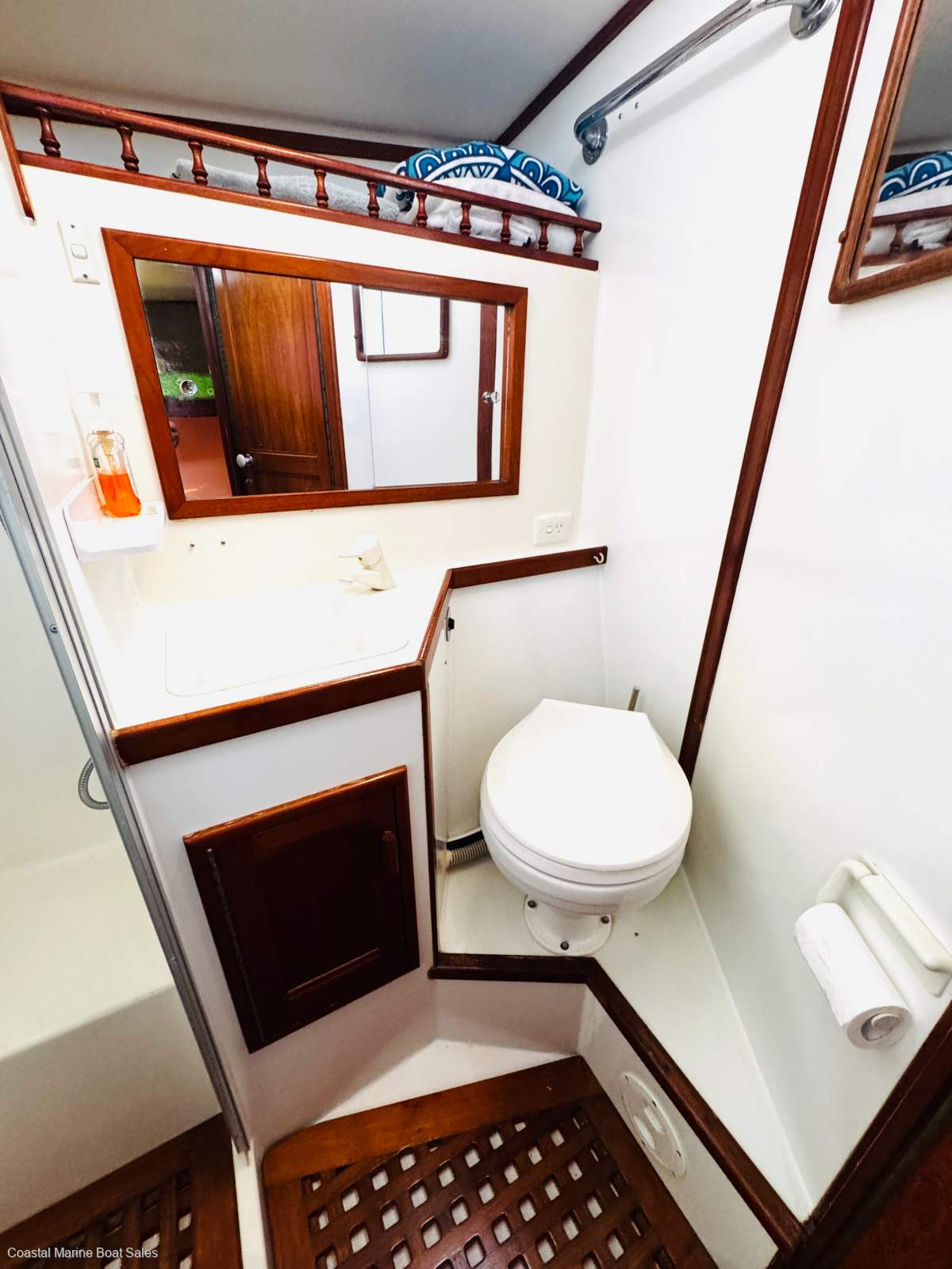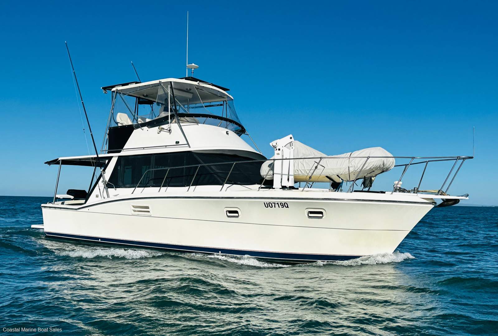 "Moonlighting" is the very popular Mariner 38 flybridge model, built in 1987, powered by reliable twin Caterpillar