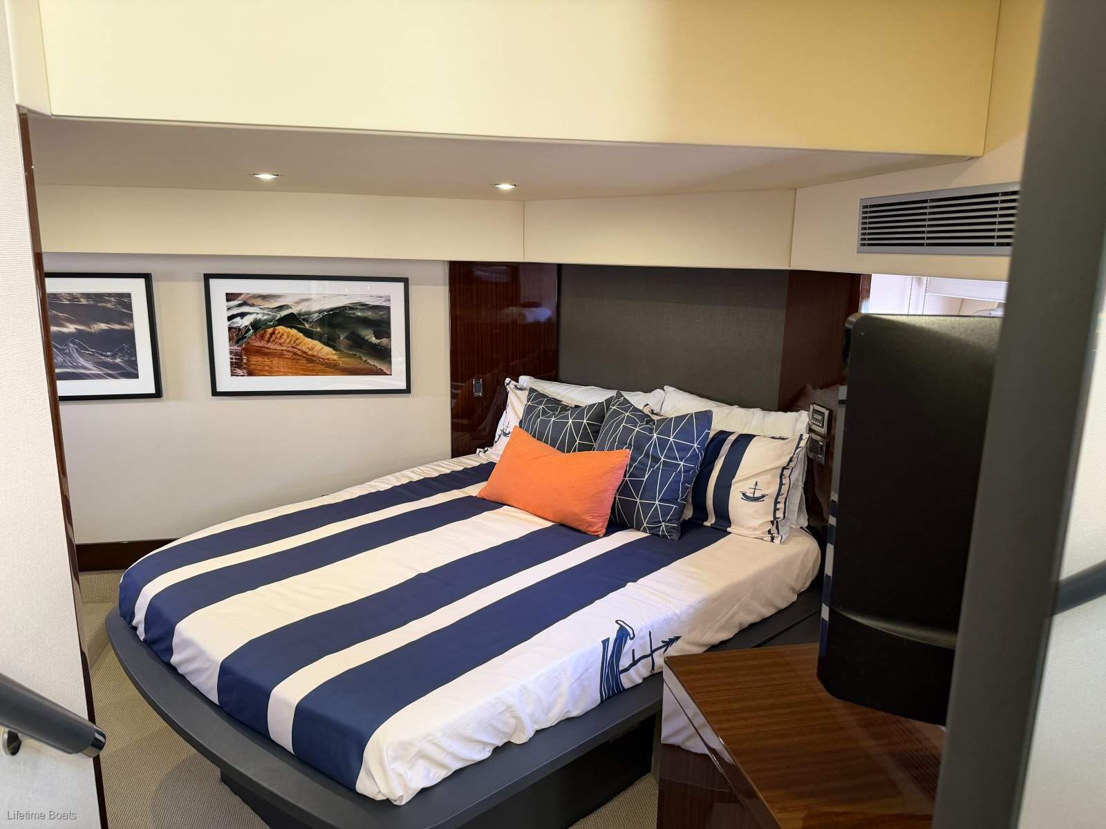 3 Cabin, Full Beam Master with Queen Berth, Double forward VIP Cabin, Single Bunk STBD Side, Saloon Lounge converts to Double Berth.