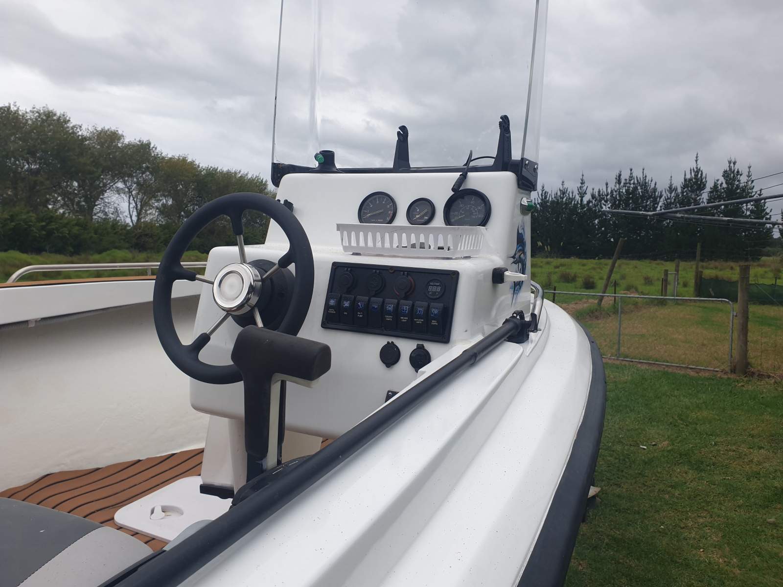 Marlborough 501 converted to side console heaps of room for fishing honda 130 4 stroke 2 tote tanks underfloor storage 2 new marine batteries 1 start and 1 deep cycle rewired front spot light cockpit lights lowrance hook 9 sounder and gps raymarine dragonfly 4 sounder and gps 1 driver seat and chilly bin passenger seat