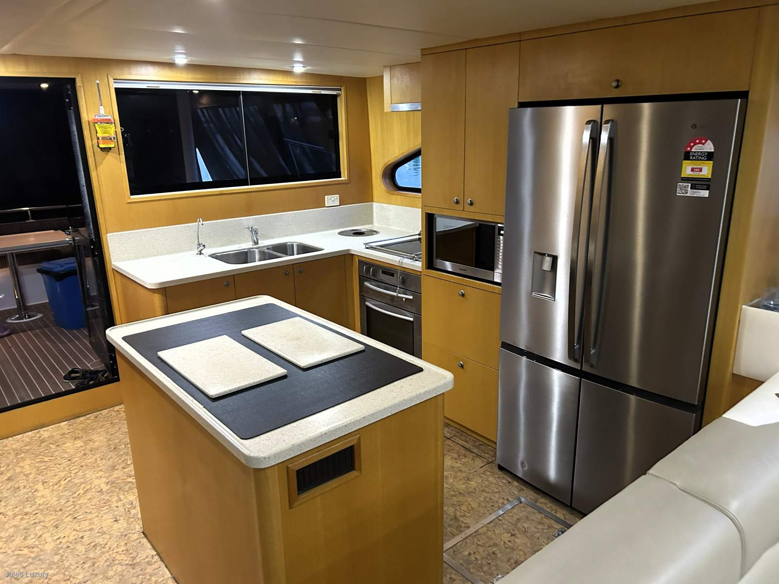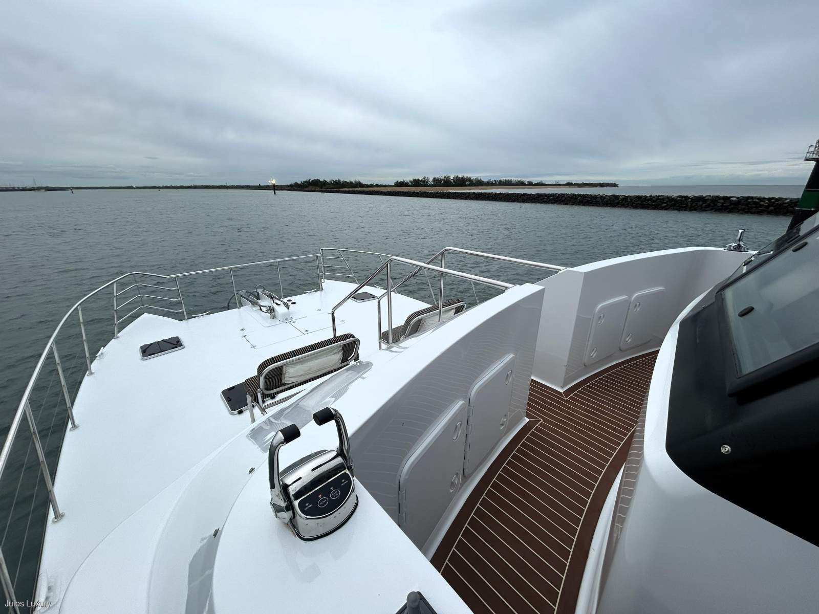 The bow area offers comfortable seating and easy walk-around decks, while the expansive rear deck is ideal for relaxation--featuring a BBQ and lounge area for more than eight guests, along with a deep freezer, sink, day head, and shower.