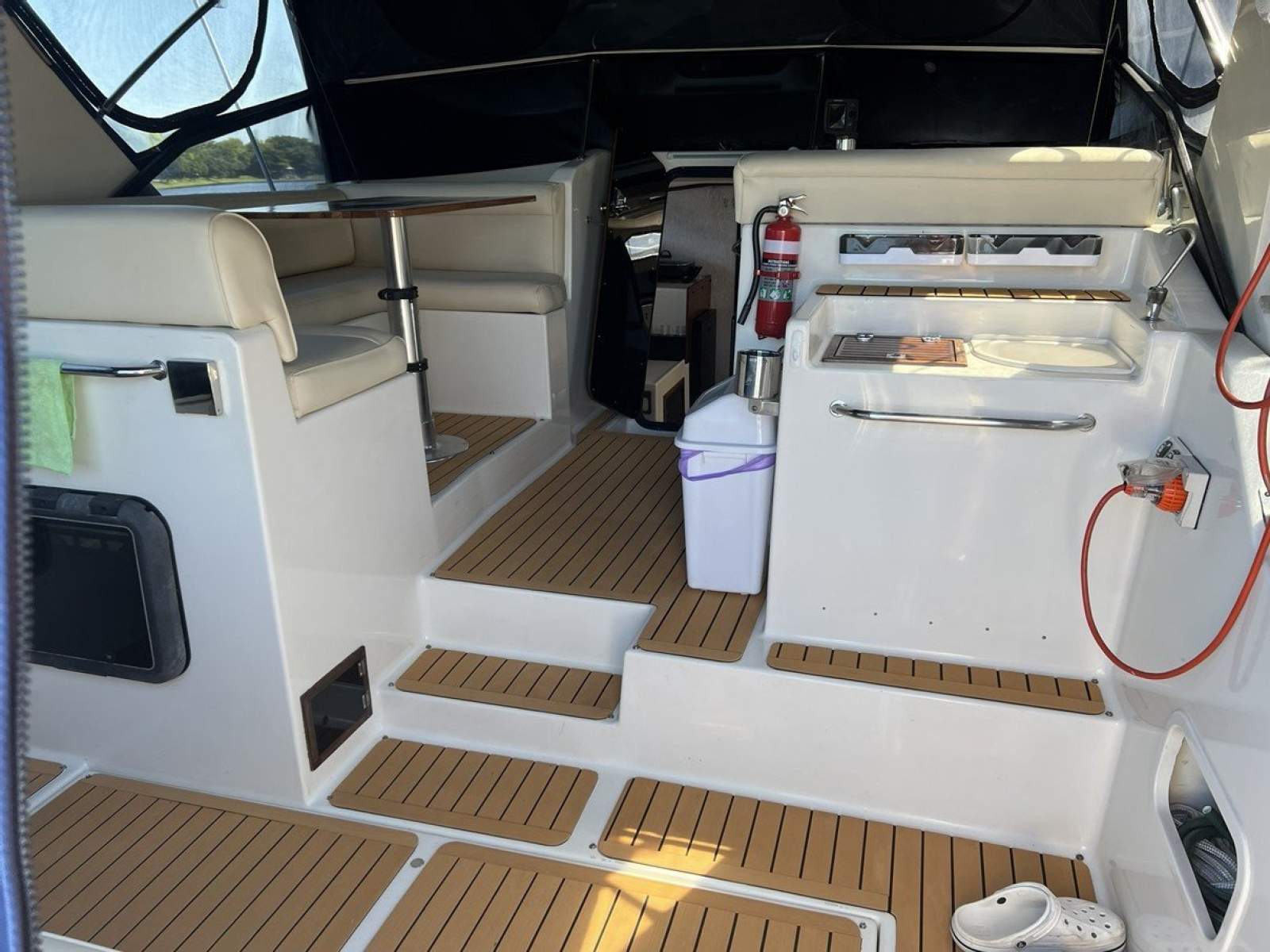 Boat has had a survey completed in April 2022. Has a table with plenty of seating in the AFT with a new fridge in the gully, build in Esky and a 44L slide in 12/240V fridge under the skipper seat. Another table in the Gulley that can convert into a bed.