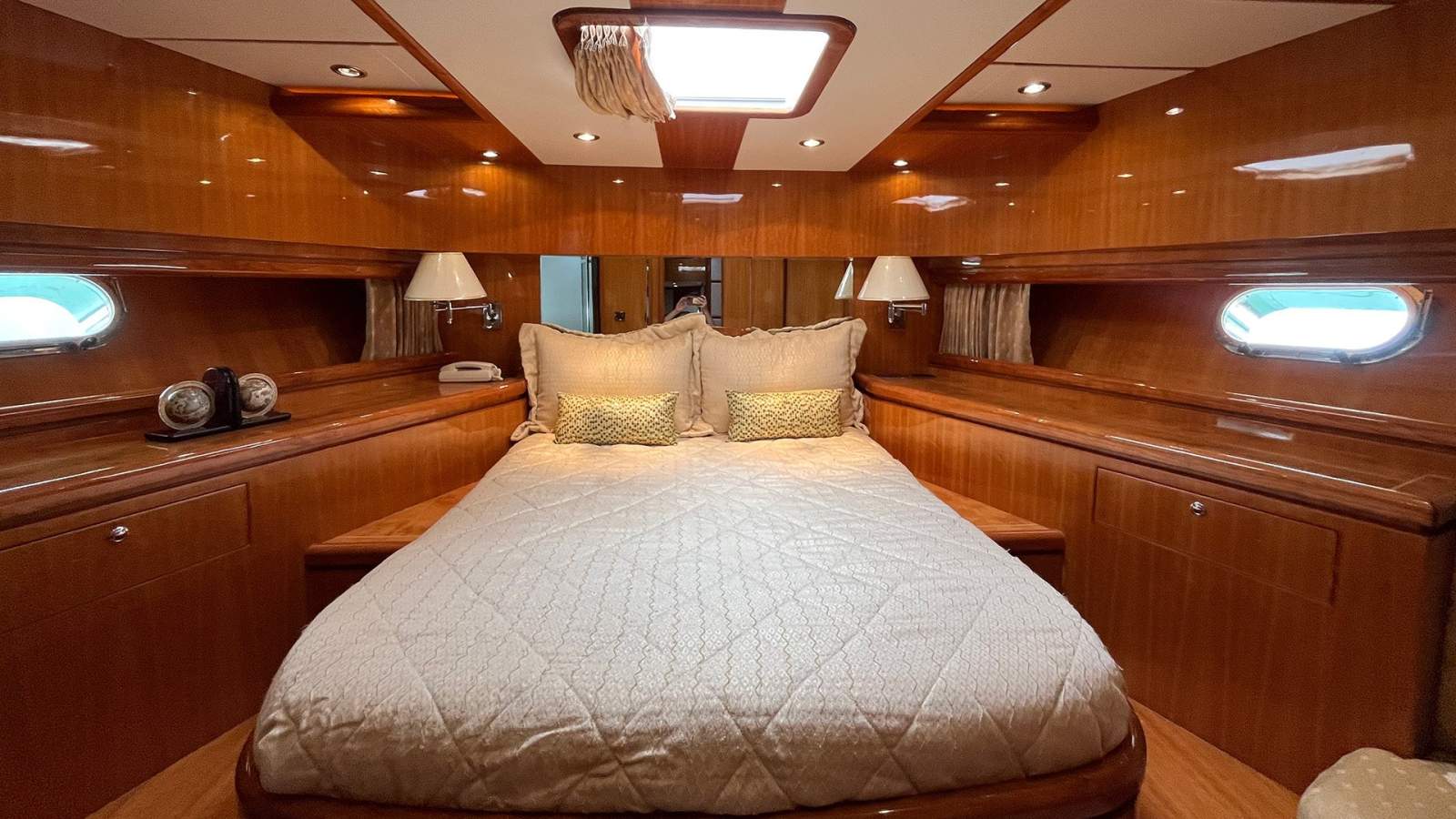 - Luxurious Accommodations - Four luxurious spacious staterooms with private ensuite bathrooms. The owner's suite is located aft, while three additional staterooms including a forward VIP, a starboard double and a port twin with Pullman.