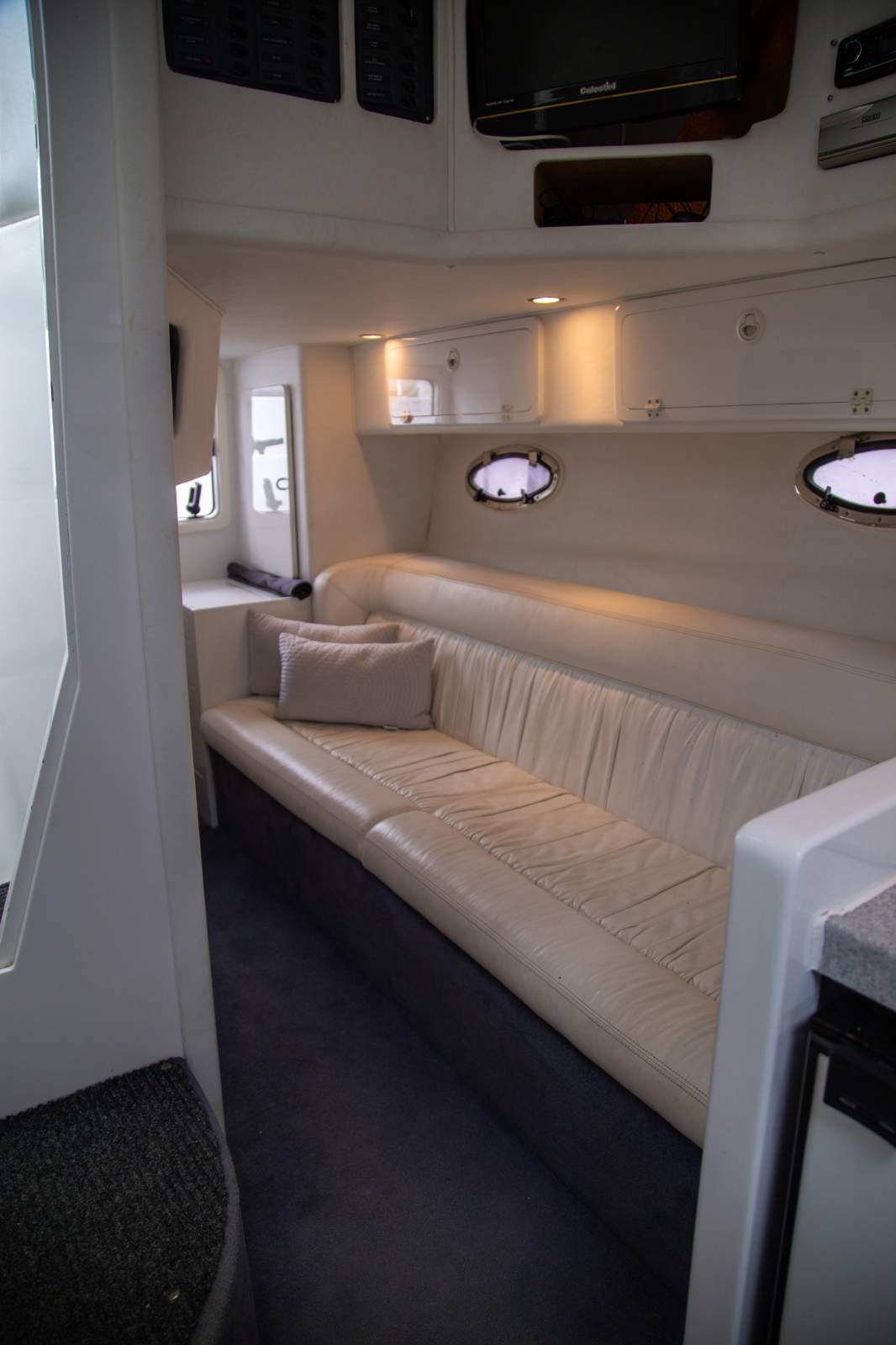 This vessel is powered by twin Volvo Penta 270HP Petrol Engines with good service history. These provide comfortable cruising at 18-20 knots and an exhilarating top speed of around 26 knots. The engine room is easily accessed beneath the cockpit floor and provides plenty of space to service the engines and systems.