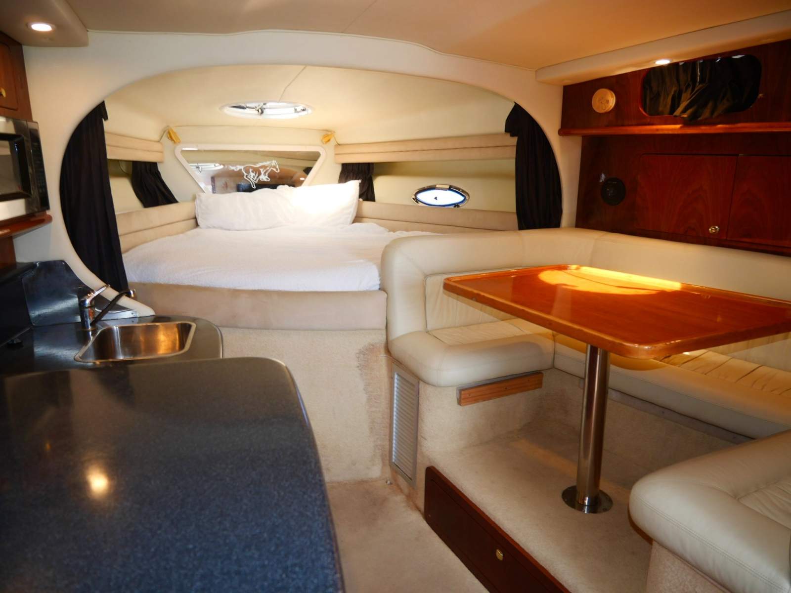 The interior is finished with luxurious timber cabinetry and offers a practical, comfortable layout suitable for extended cruising or weekend entertaining: