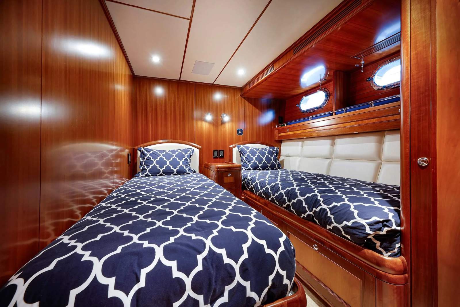 Full-beam master stateroom, multiple guest cabins, and dedicated crew accommodation. Designed for extended cruising comfort with functional layout and quality finishes.