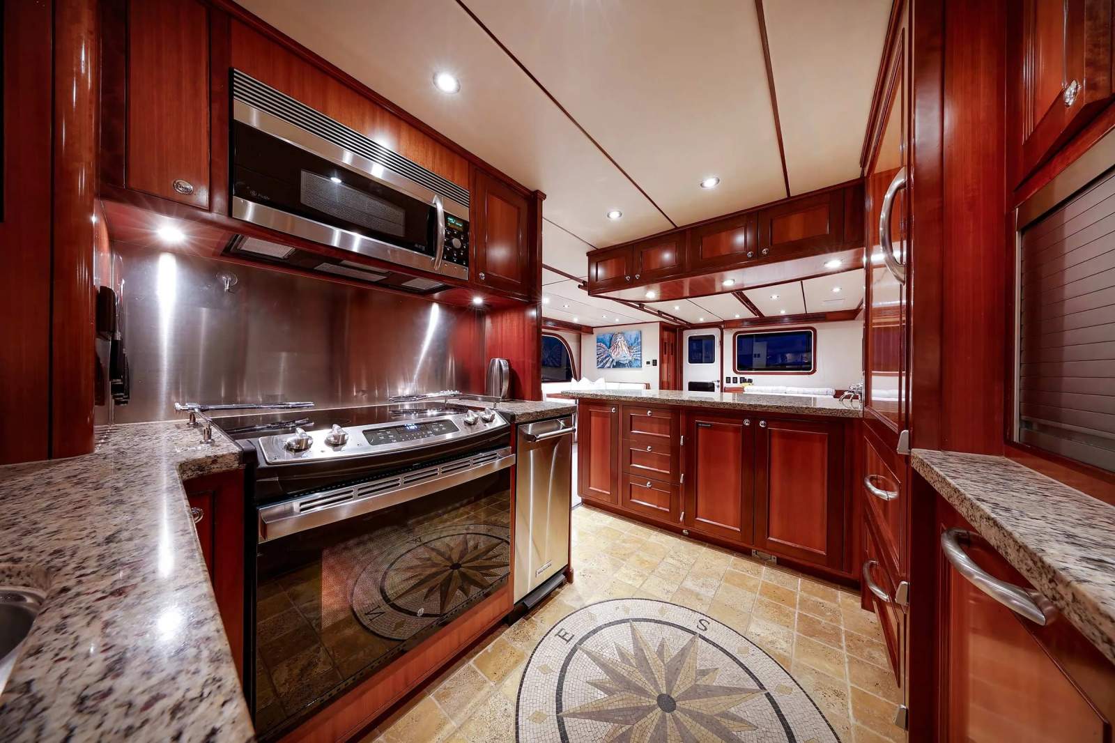 Fully equipped galley with ample storage and modern appliances for long-range cruising.