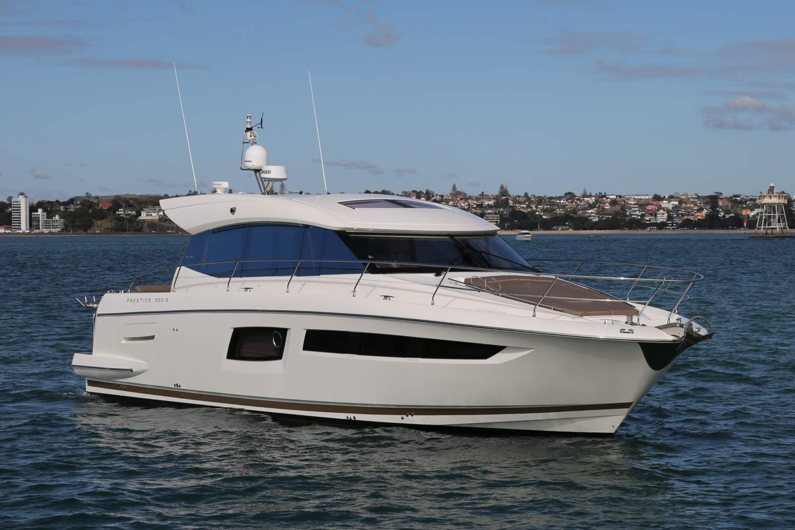 Designed and built by Groupe Beneteau, the Prestige 500S is celebrated for its contemporary European styling, intelligent use of space, and relaxed onboard ambience. This boat offers generous accommodation including a full-beam master cabin with ensuite, flexible guest cabins, a bow sunbed, a convertible cockpit daybed, and a tender garage capable of housing a tender up to three metres, along with overhead rod storage. Combined with an appealing price position, she represents excellent value for New Zealand buyers seeking refined cruising, easy ownership, and enduring resale appeal.