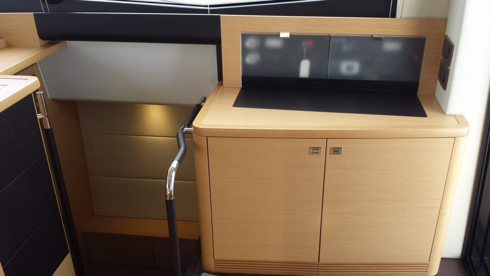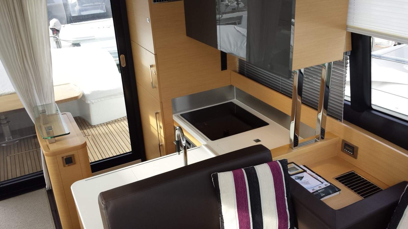 Powered by twin Volvo IPS600 engines producing 435hp each, she delivers smooth, efficient performance complemented by intuitive handling systems. Joystick control, Volvo Skyhook dynamic positioning, and a bow thruster make close-quarters maneuvering and docking remarkably easy, while features such as air conditioning, heating, an 11kVA Onan generator, and a comprehensive Simrad navigation suite enhance comfort and confidence on longer passages.