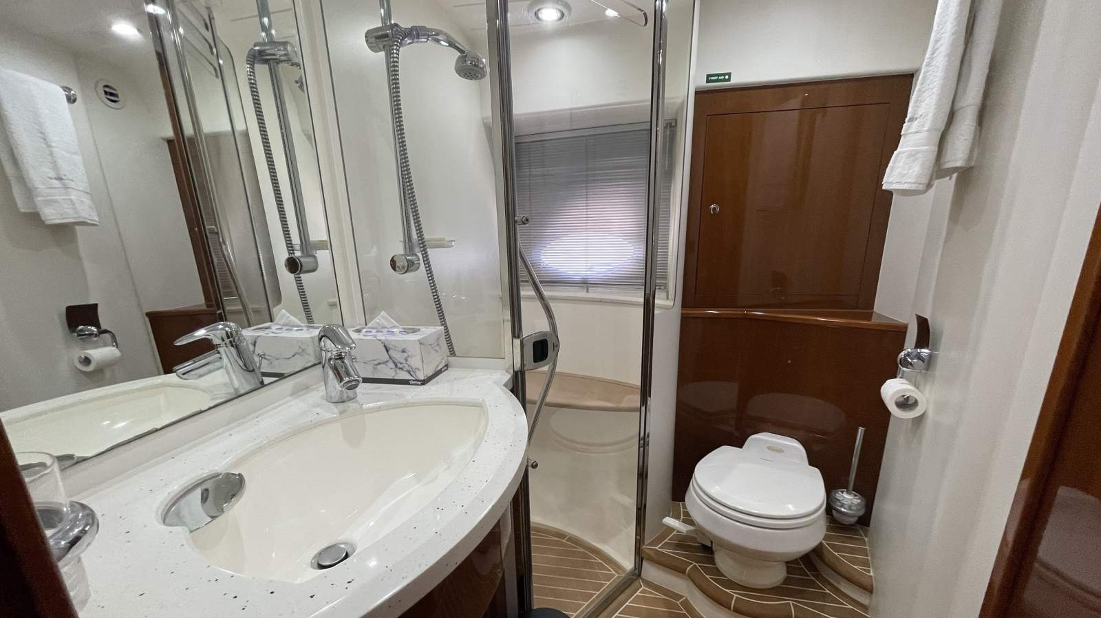 This PRINCESS V58 is powered by dual 900HP MAN's. Performance is nothing short of exhilarating offering a top speed of 32 knots and a comfortable cruise of 24 knots if desired. When the moment comes, she will intuitively and precisely cut through the waves, lock-to-lock without concern.
