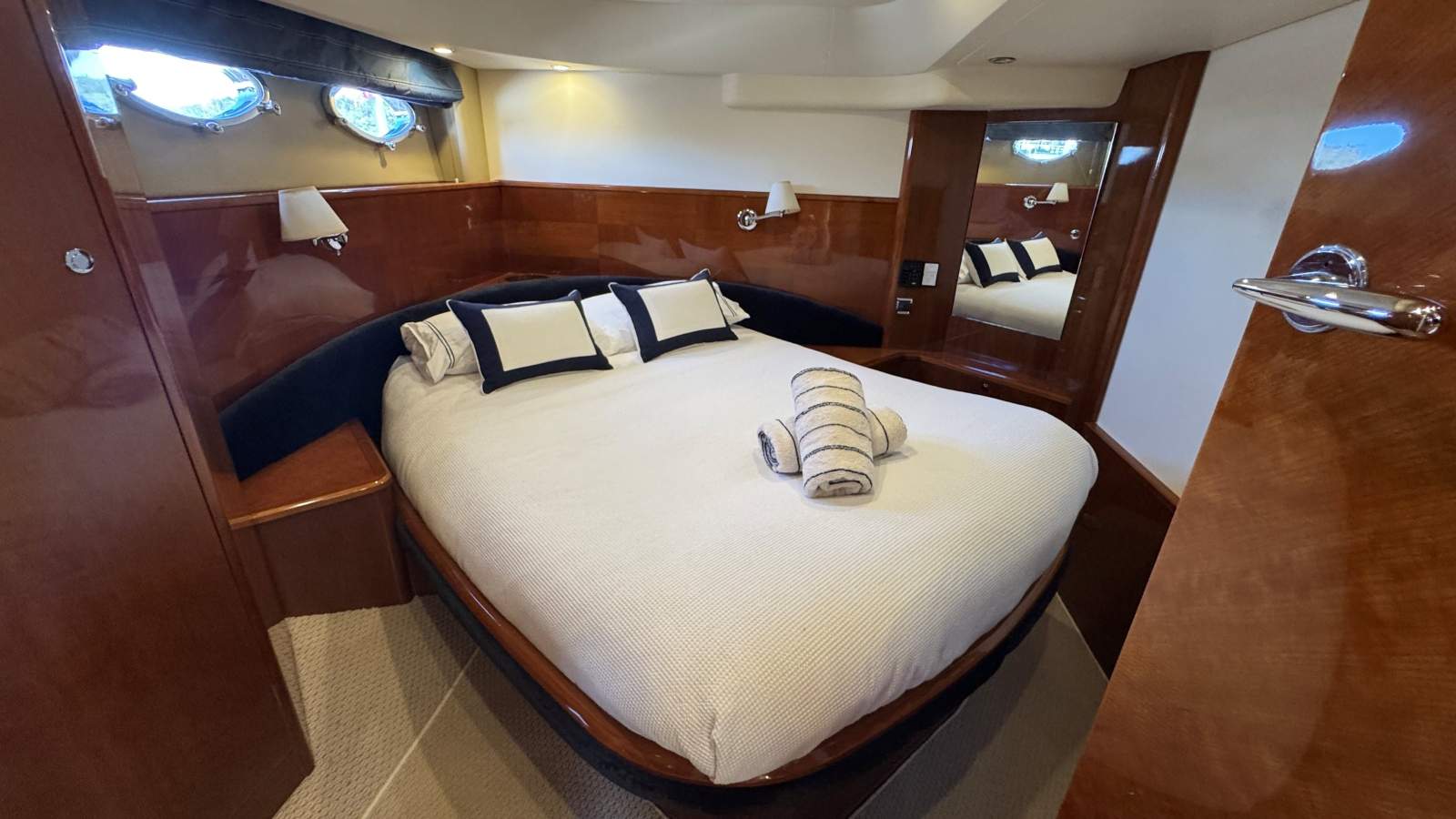Master stateroom and bunk cabin midships