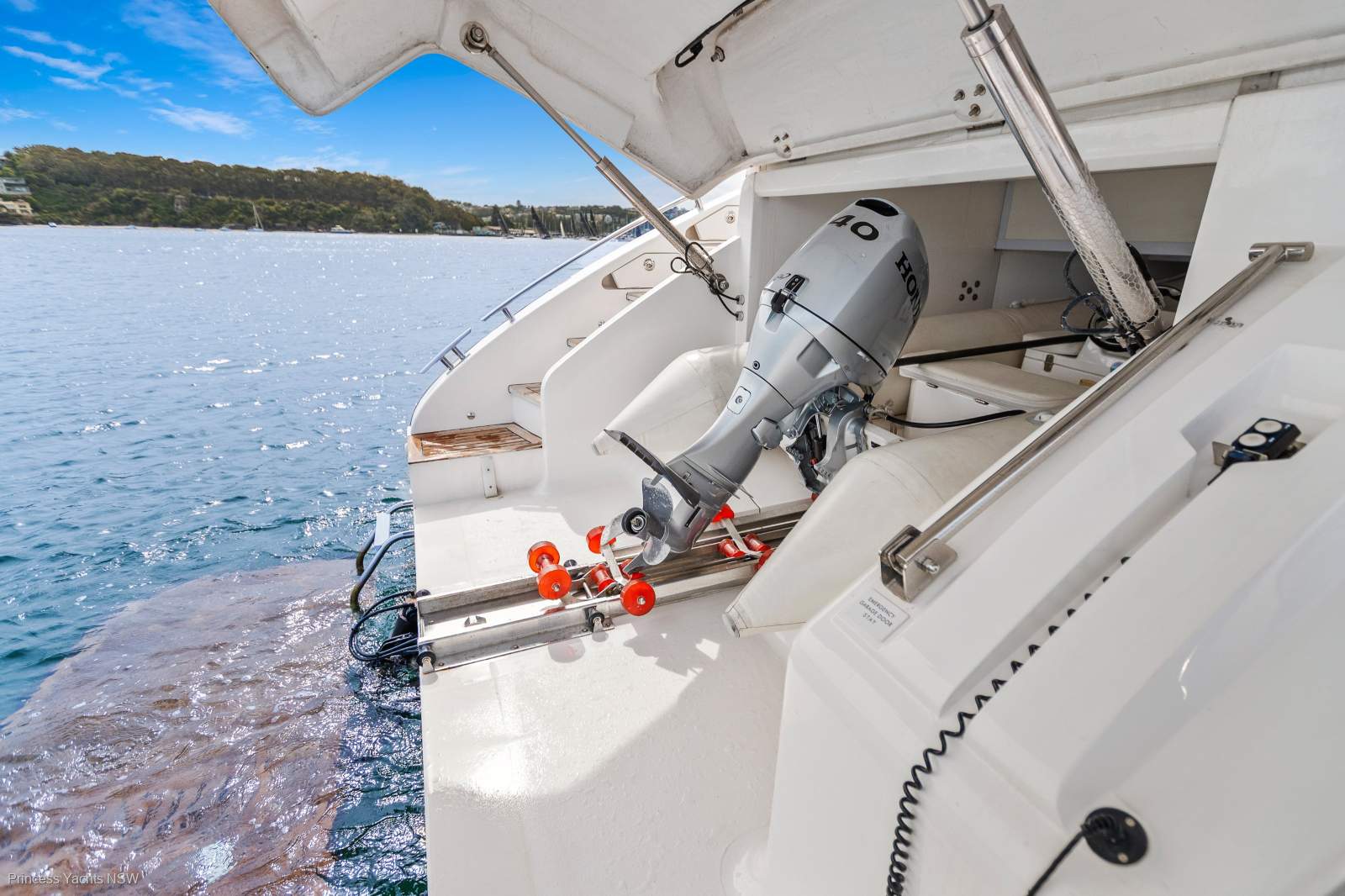 Added is the convenience of a huge tender garage currently housing a Brig 360 Honda 40hp matched with a equally huge sun pad which makes for the perfect place for lounging / relaxing in the sun after a swim.