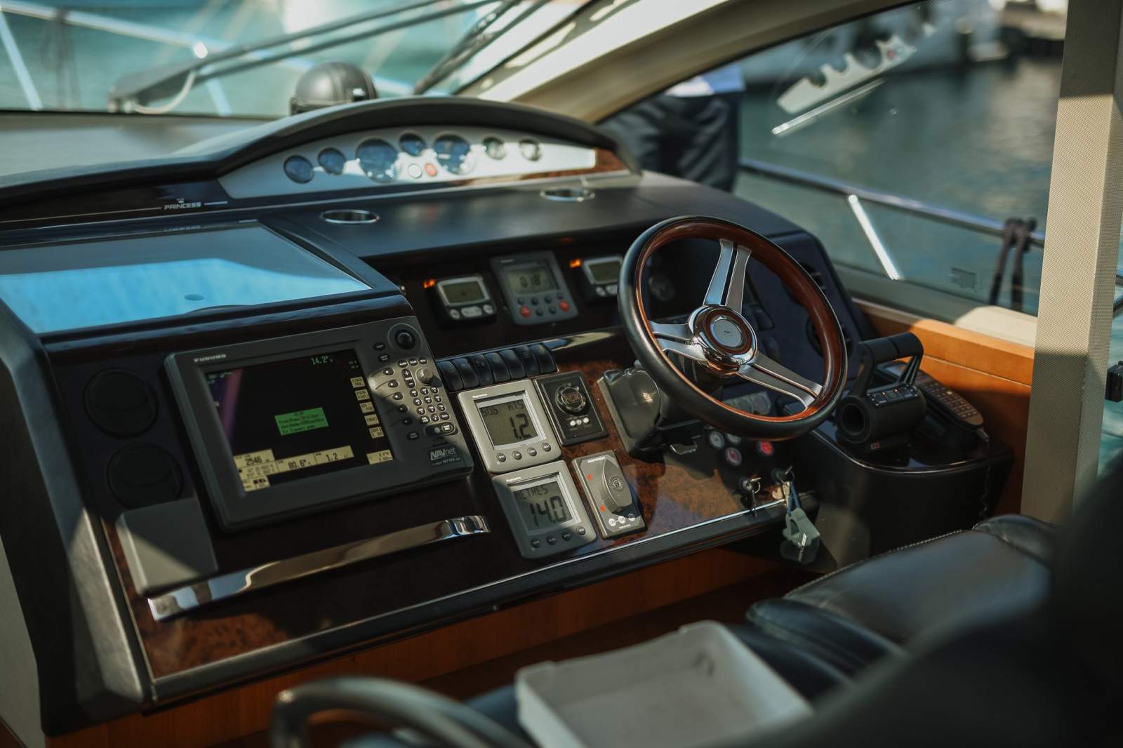 Her specification is comprehensive and well suited to serious cruising. Navigation and helm systems include Furuno electronics, a Raymarine autopilot and Simrad VHF, while manoeuvring is assisted by a bow thruster. Onboard comfort is supported by an Onan generator and four zone Cruisair air conditioning, ensuring reliable power and climate control wherever she cruises.