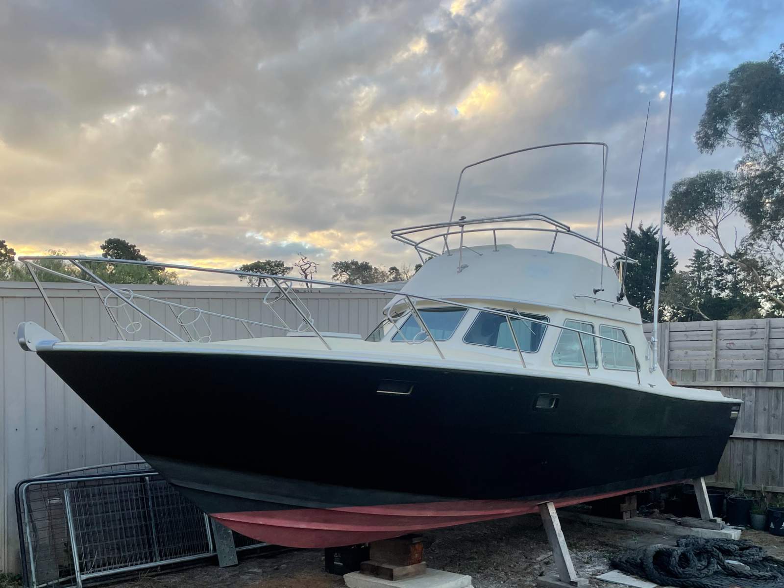 This boat was originally red and myself being a professional spray painter decided to change it to black gloss instead, at the moment it is in a PPG marine high grade polyurethane primer awaiting final colour change which I do have the paint for it also or new buyer choose your own colour that suits you. Also more than happy to help new buyer paint it for a small fee if needed. All the anti foul has been professional stripped off ready for new coating, engine bay has been fully cleaned out and ready for new flo coat paint. The cabin I threw out the old look layout to make way for a more roomy modern style look which isn't that hard to do if you know what you are doing, also all the seating and bedding cushions are still available with the boat.