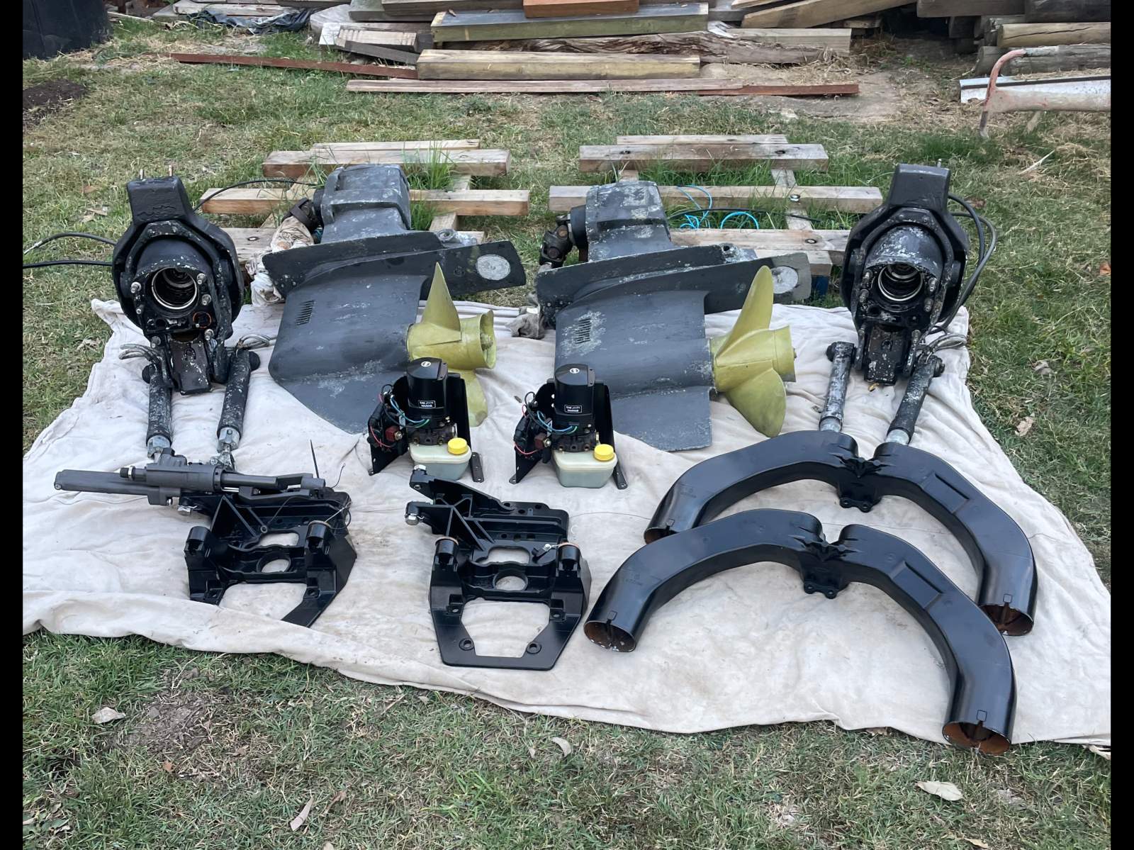 Engines and legs are from a donor boat well maintained in which that owner replaced them with Volvo Diesel engines for 90k package replacement.