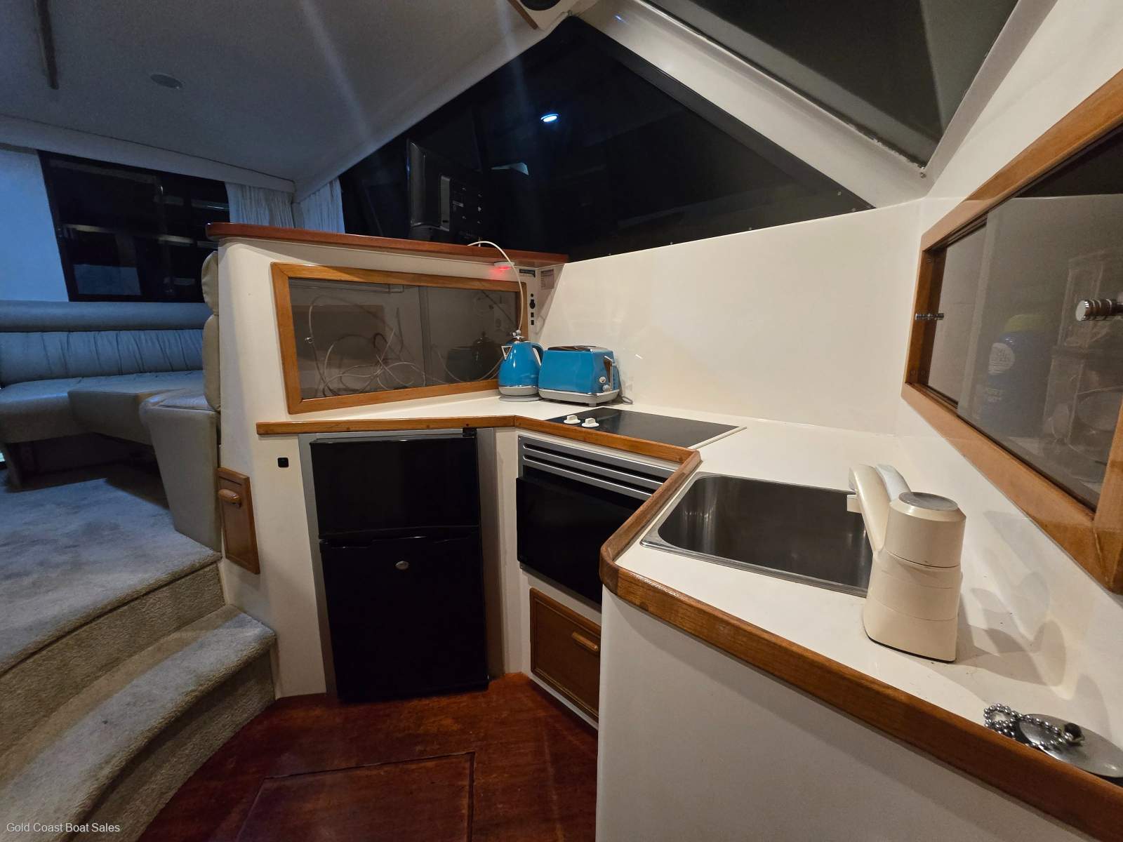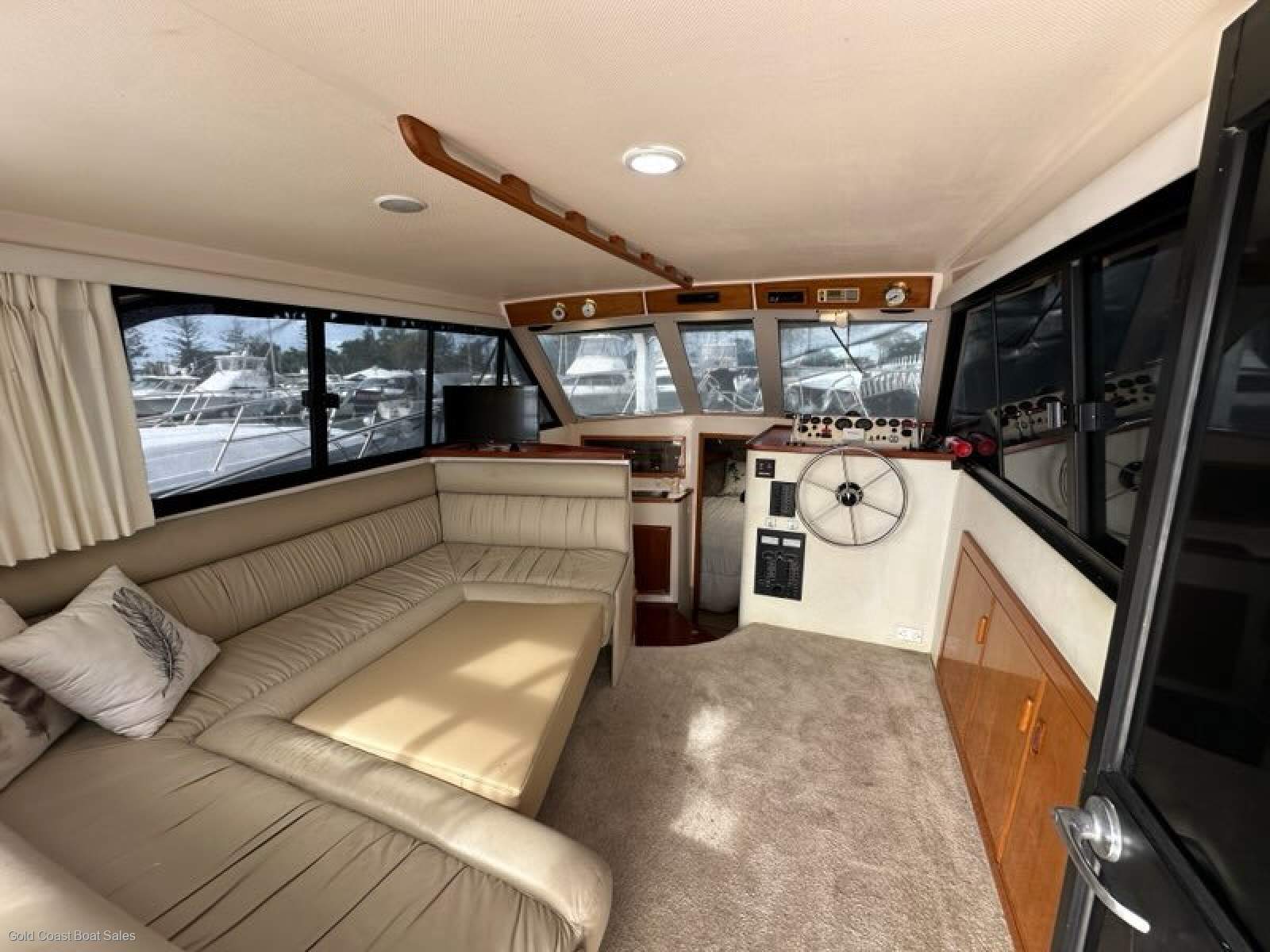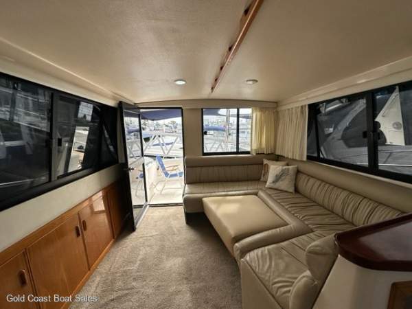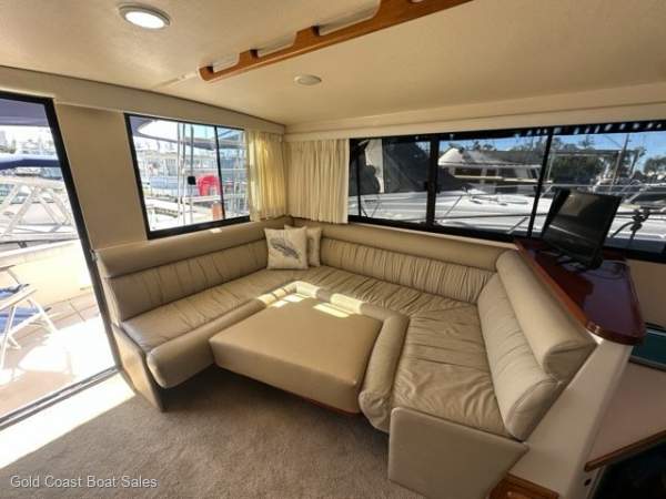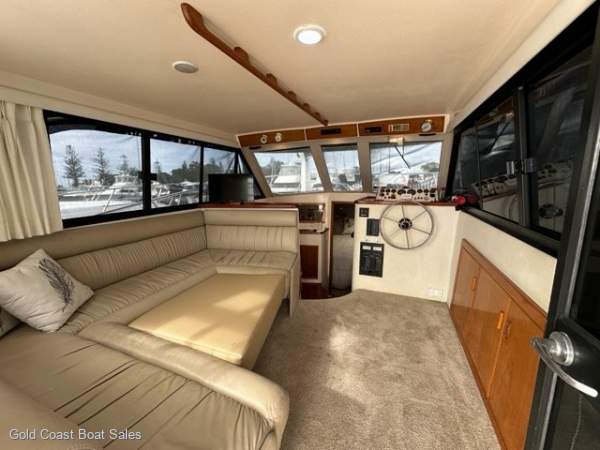 Great family cruiser with two 2024 shaft driven Mercruiser 350 Magnum engines with thirty hours only this is a well kept cruiser with a late model Westebeke generator for running the onboard appliances and features a deck davit and 2.4m RIB inflatable dinghy for ship to shore trips and has recently had new batteries fitted. Features a forward cabin with island bed and an infill for a convertible dinette for extra sleeping accommodation when needed. The cockpit features an additional fridge and freezer for food and drinks and the flybridge helm station has a great selection of electronics including autopilot and big screen gps units all recently fitted in 2024 and provides great support when cruising to island getaways. Saloon windows have shade screens and plenty of storage space for your clothes and food provisions. Contact us for more information today