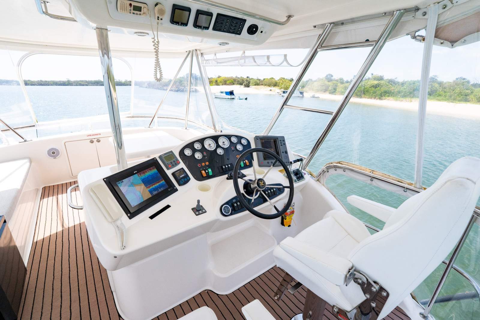 43" TV to Saloon, Fusion Stereo system throughout, TV in Stbd cabin, TV in FWD cabin.