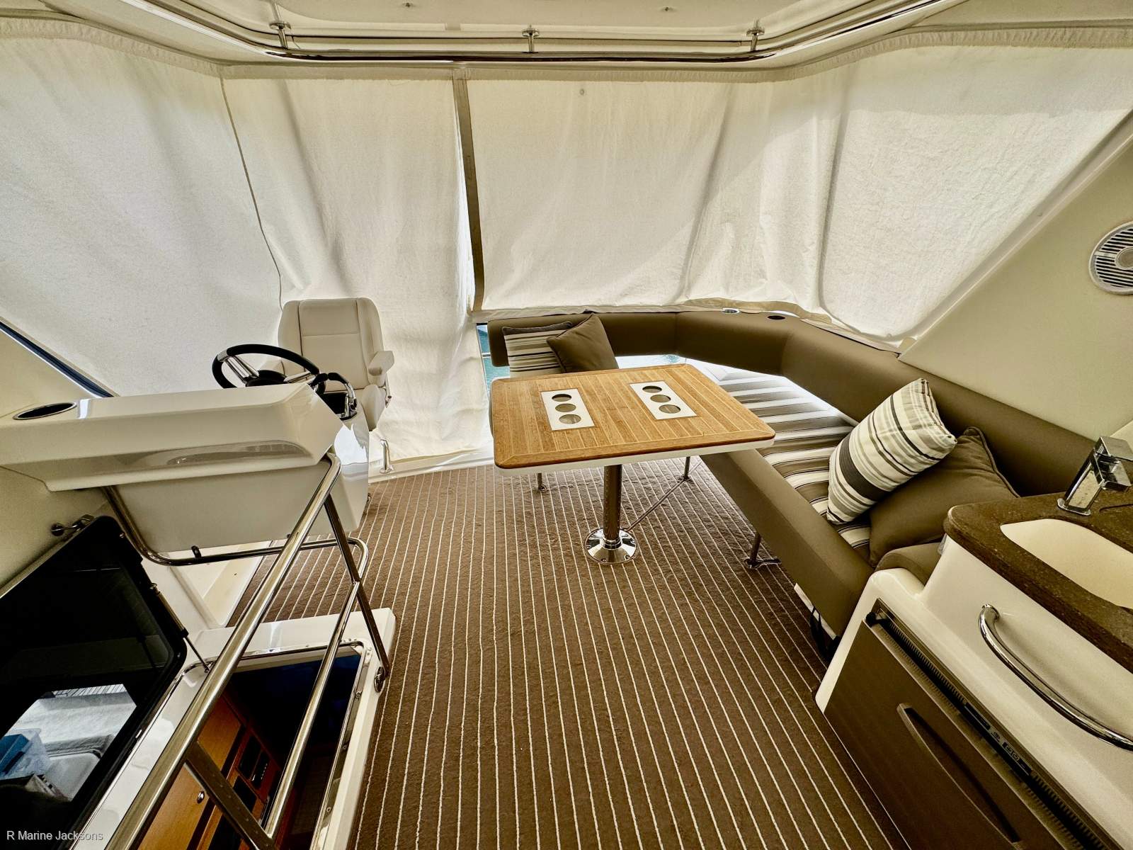 Flybridge has 4 x sided interior drop down protective covers