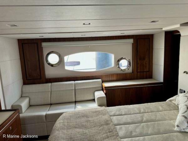 Performance & Handling: The yacht, powered by twin Volvo Penta D11 IPS 950 engines (725hp each), offers a top speed of over 30 knots and a comfortable, quiet cruising speed around 20-25 knots. Experts from BoatTEST found it to be one of the best-handling IPS-equipped boats they have tested, noting its nimbleness and stability. The optional Seakeeper gyroscope significantly reduces pitch and yaw, enhancing comfort both underway and at rest.