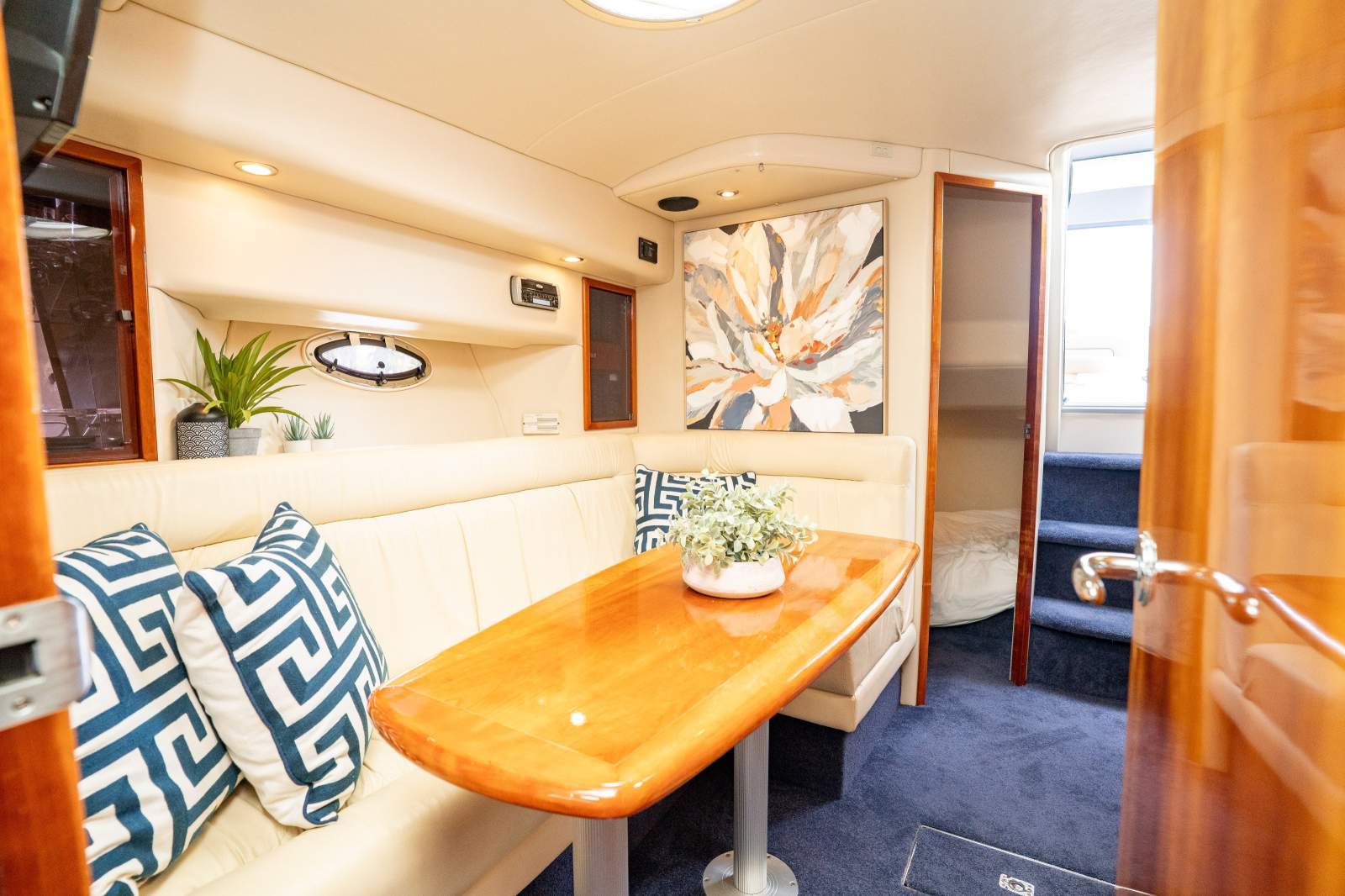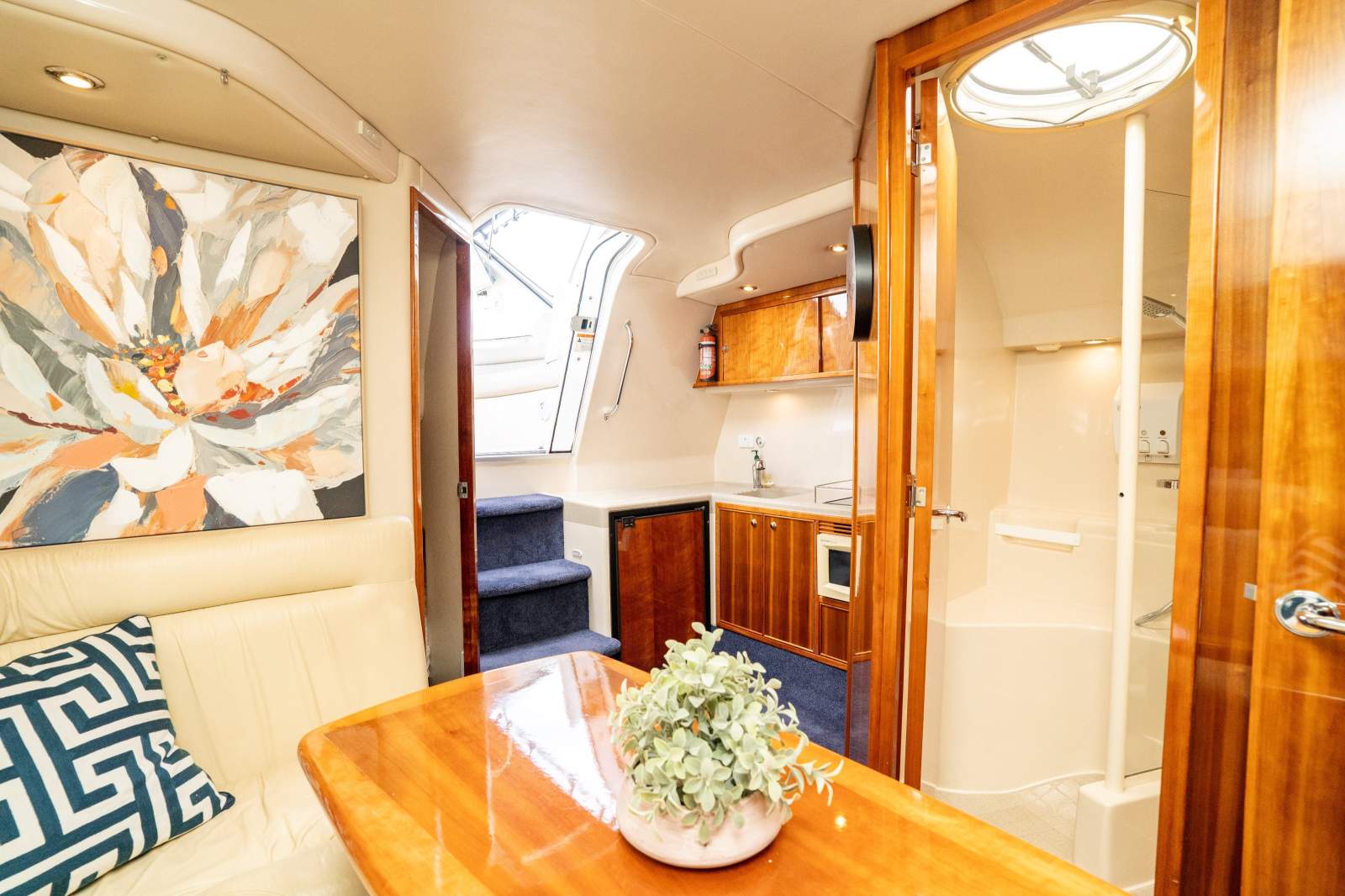 2 cabin layout, saloon lounge converts to bunk bed to accommodate 6 comfortably
