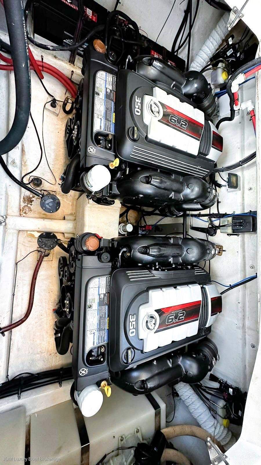 Twin 6.2L Mercruiser engines paired with stern drives. Brand new engines installed in 2023. With just 90 hours of runtime since their installation
